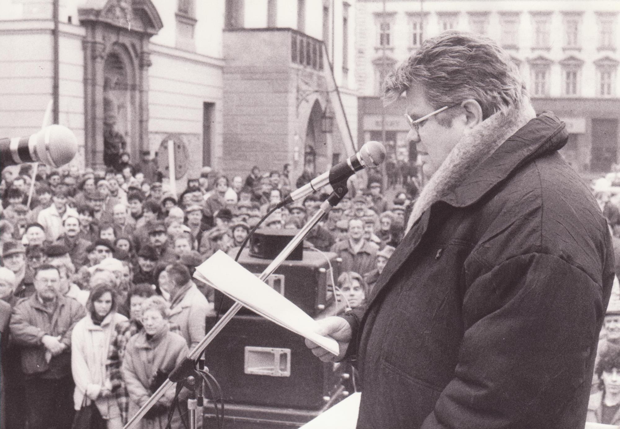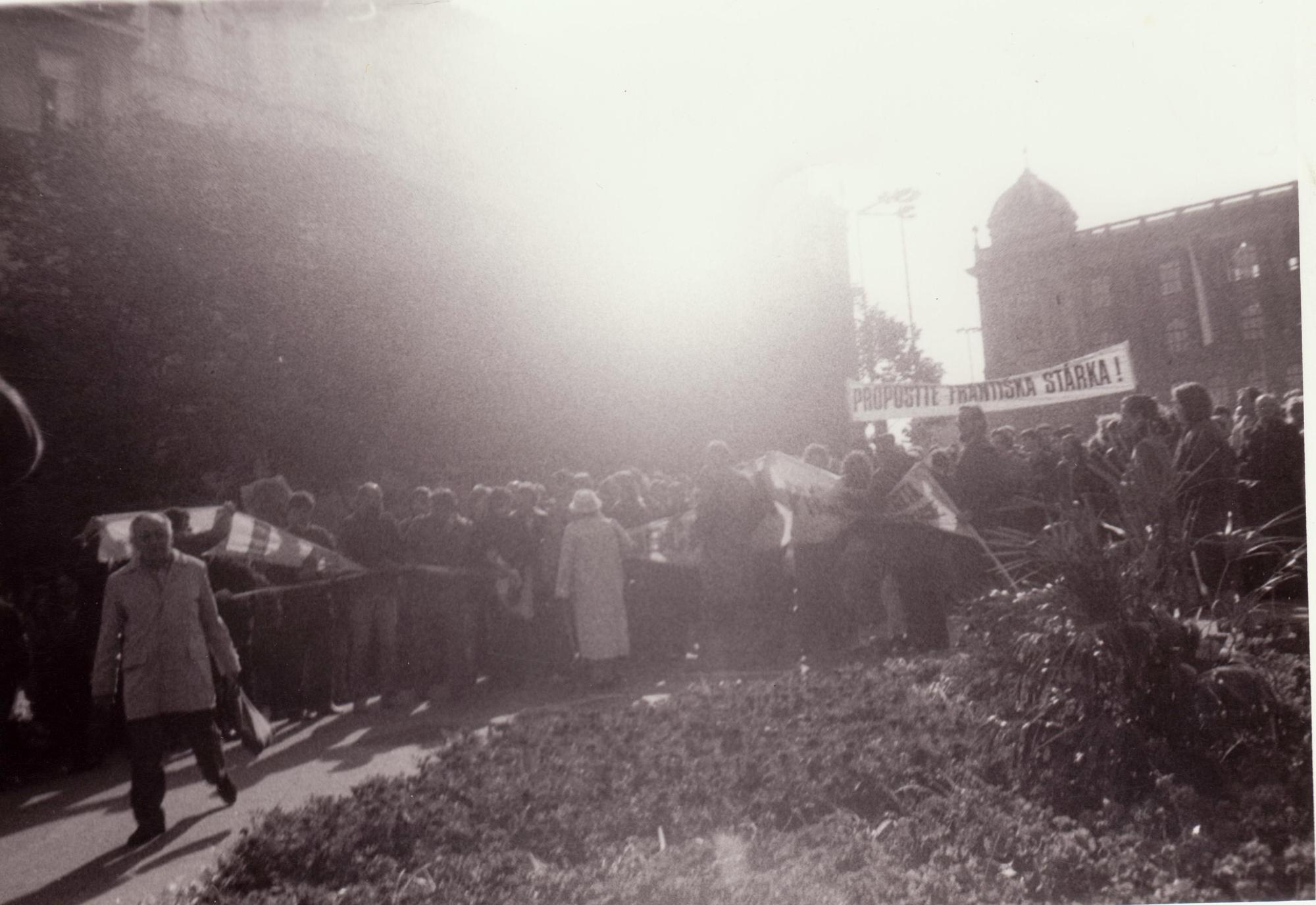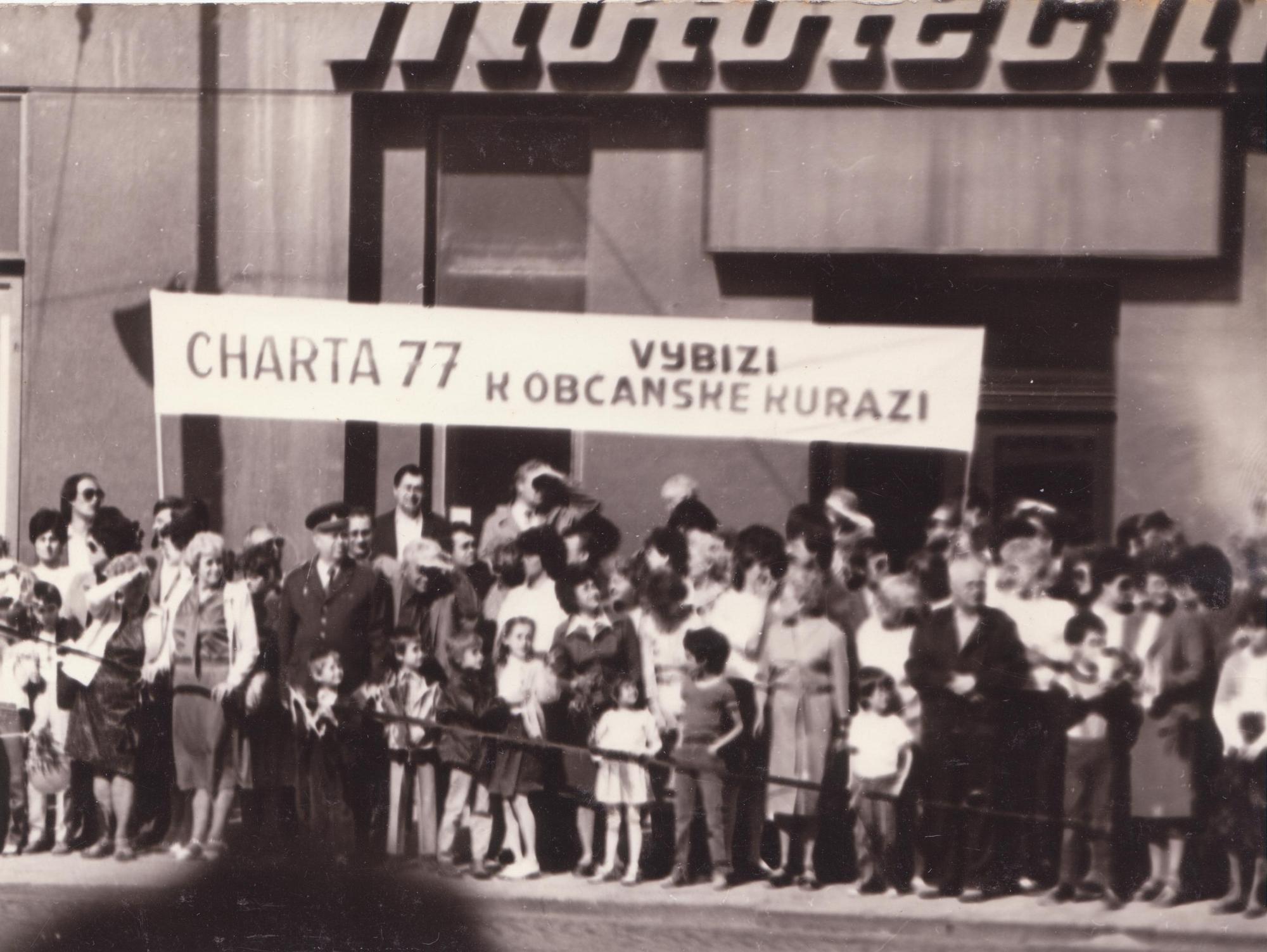 „K desátému výročí Charty vyšlo Slovo k spoluobčanům. To byla výzva od organizátorů Havla a těch dalších, že máme nějak začít vyvíjet činnost. My jsme si to tenkrát vzali za svý a napsali jsme dopis Husákovi, který se jmenoval Dopis pěti dělníků z Moravy, kde jsme vyzvali Husáka, že je zodpovědný za tento stav v zemi a tak dále, a že ho vyzýváme, aby odstoupil z funkce. To byla jedna věc. Potom jsme si připravili ten transparent v Olomouci na prvního máje. Tak jsme různě reagovali na všechno a podařilo se nám to držet cirka pětadvacet až třicet minut před tím májovým průvodem, jak šel ten průvod kolem nás. Bylo to před tribunou. To znamená, že z tribuny nás bylo vidět. Samozřejmě jsme hned následně skončili ve vězení. My jsme předtím, to byla taková sranda, s Tomášem (Hradilkem) psali dopis Miloušovi Jakešovi. Nějak jsme ho zkritizovali a teď jsme napsali, že jsme vystupovali, vystupujeme a budeme vystupovat proti tomuto režimu. To byl dopis Jakešovi, který byl odeslán samozřejmě s adresou, se vším. Teď když nás sebrali a odpoledne začaly výslechy, až bylo po výsleších k tomu transparentu, tak řekli: ,Vyndejte věci z kapes na soupis do věznice. Ještě předtím, když jsme s Tomášem hovořili, když jsme byli zadržení, jsem řekl: ,Tomáši, mám tady v kapse ten dopis. Co mám dělat? Mám ho zničit?‘ On říkal: ,No, nech to. Uvidíš, co bude.‘ Tak jsem ho nechal. Měl jsem ho v kapse. Pak jsem ho vytáhl, ti estébáci na to nahlídli a teď začal frmol. Začali lítat. Nevěděli kam, honem rychle. To znamená, že se to protáhlo a do věznice jsme přijeli až večer.“