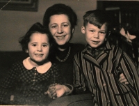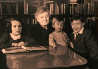 „Ten bratr maturoval akorát v jednapadesátým roce na akademickým gymnáziu. A protože už to bylo všecko změněný, tak přišel jeden den ze školy a říkal: ‚Mě nechtěj pustit k maturitě z politickejch důvodů.‘ A druhej den se teda tatínek sebral a říkal, že to jde zařídit. Tak odešel a za hodinu nato zazvonili tři pánové v koženejch kabátech, ptali se po tatínkovi. A říkali: ‚No, tak když není doma, my si na něj počkáme, mezitím uděláme prohlídku domovní.‘ My jsme měli třípokojovej byt, z nichž jeden byl... byly to větší pokoje, protože to bylo ve vile. Jeden byl takhle obehnanej těma knihama úplně tak, jak je to tady, tak to bylo na třech stěnách. Ty knihy prohlíželi jednu po druhý celý dopoledne, jestli tam nejsou nějaký... ví bůh co. A ten tatínek třikrát za dopoledne volal, my jsme mu nesměli říct, že oni tam jsou. Já jsem byla doma shodou okolností, že jsem byla nemocná nějak, tak jsem byla doma ze školy.“