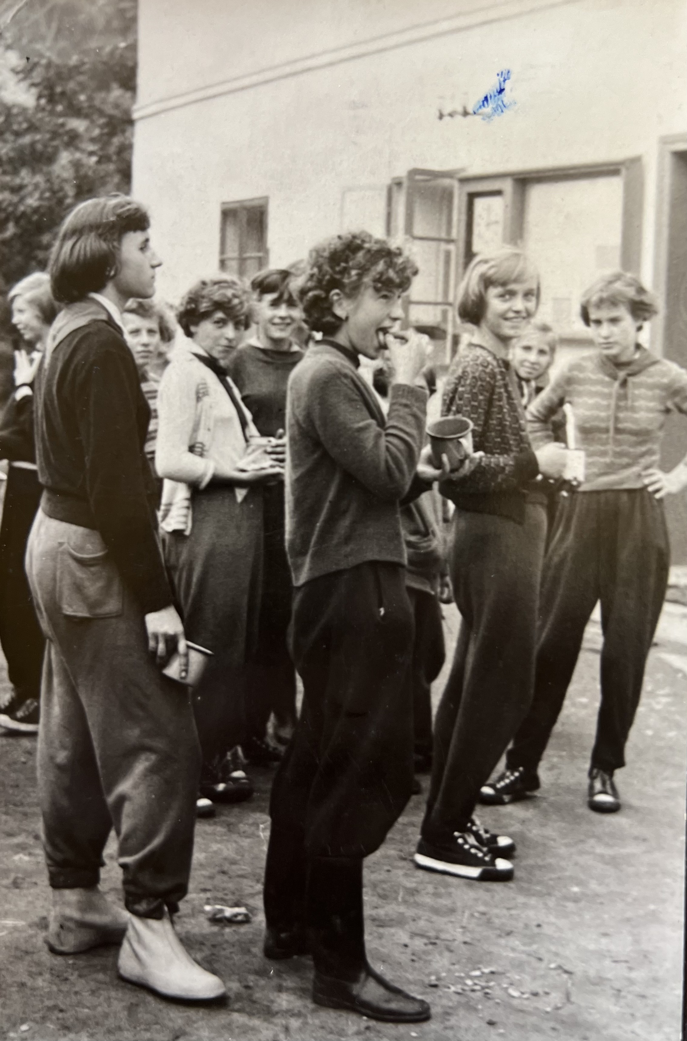 • "No a tam, když jsem šla do té šesté třídy na jinou školu, tak mě paní učitelka dala takový papír, kde mamka měla vypsat, kdy jsem chodila, kdy mluvila a plno dalších věcí. No a ona polovinu nechala prázdnou. Já jsem si postěžovala u sousedovic holky a říkám: ,Slávko, podívej se, ona má jednu jedinou dceru a neví, kdy chodila, kdy mluvila.‘ Ona říkala: , No já jsem slyšela, jak se spolu s mojí mamkou bavily.' A že teda není moje vlastní, že je jako moje teta.‘ Ale dál už jsem prostě nic nezjišťovala, protože ona byla hrozně přísná a já jsem se jí vyloženě, řekla bych, bála. Já si nepamatuji, že by mě nějak objala. Já si nepamatuji, že by třeba k narozeninám, zajímavé, že mi neutkvěl nějaký okamžik, kdy bych od ní něco dostala. K narozeninám, na svátek. To jsem se jmenovala Vlasta, jak si mě předělali na Vlastu, tak to bylo třiadvacátého prosince, tak to se vždycky řeklo, to dostaneš čtyřiadvacátého všechno dohromady a bylo. Ale běda, kdybych já zapomněla jí popřát jako třeba k svátku, tak to by mně určitě nějak vyčetla."