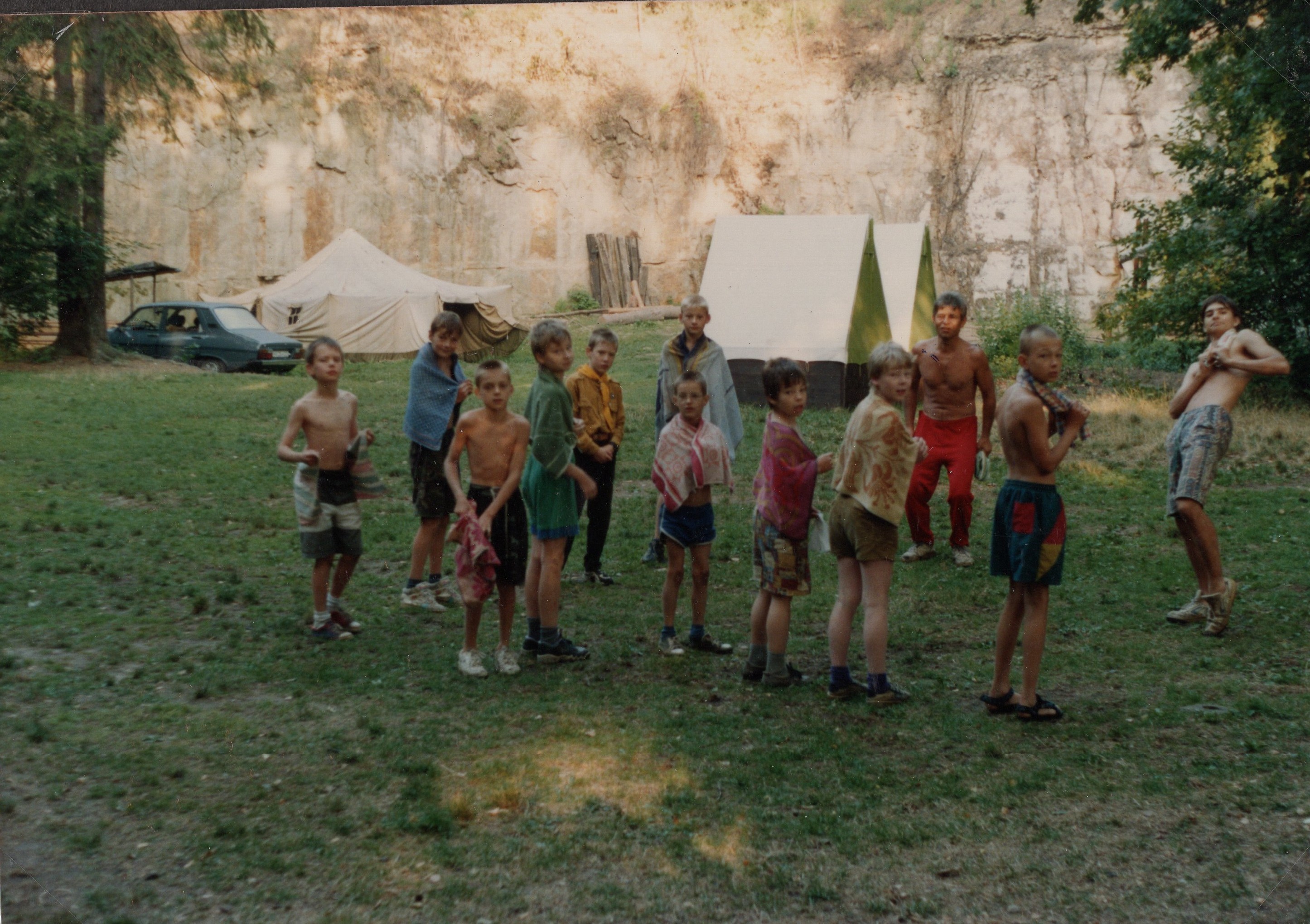 • „Nám tam podpálili seník – na Zlaté skále. Bylo 35 stupňů, okolo byly vyschlé lesy a pískovcové skály a můžu vám říct, že jsem byl hrdý na mé kluky. To by takhle nedokázal ani dospělý. Okamžitě udělali zástup, ‚štrúdl‘, a podávali kbelíky s vodou. Uhasili jsme to a kluci byli šťastní, že je hasiči a policajti pozvali k nim a poděkovali nám. No a pak nám chytl celý tábor a zas jsme to dali dohromady.“