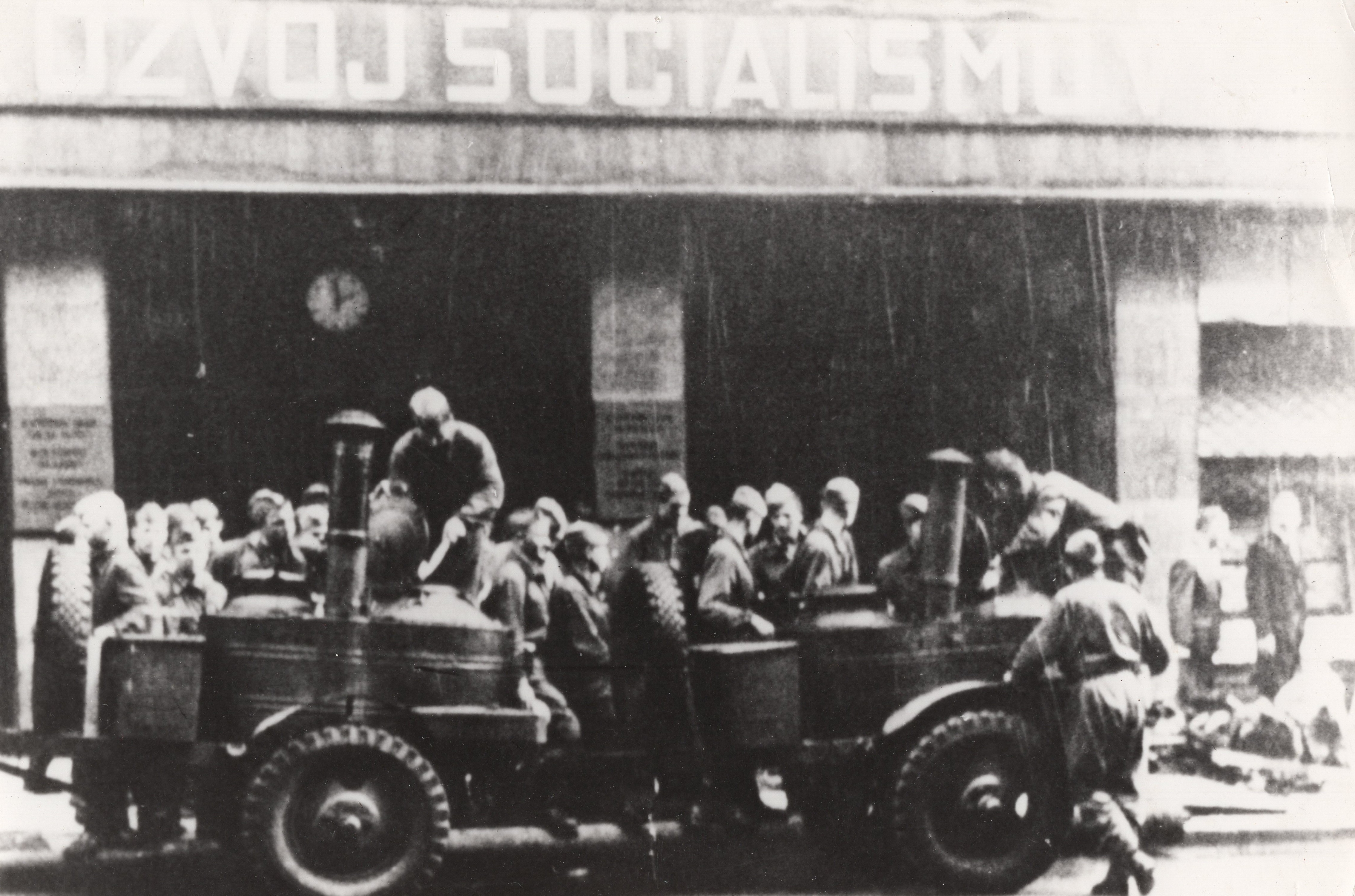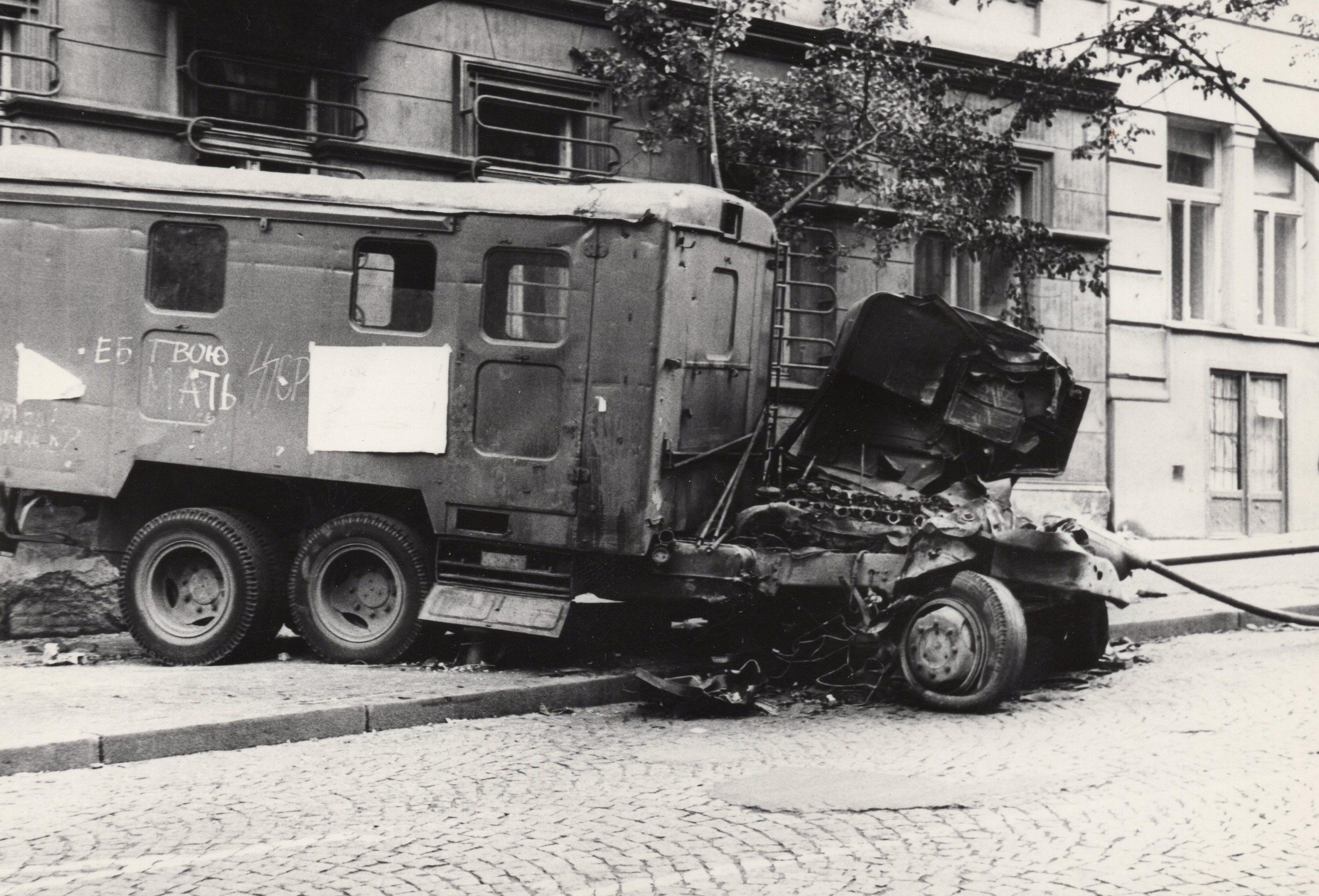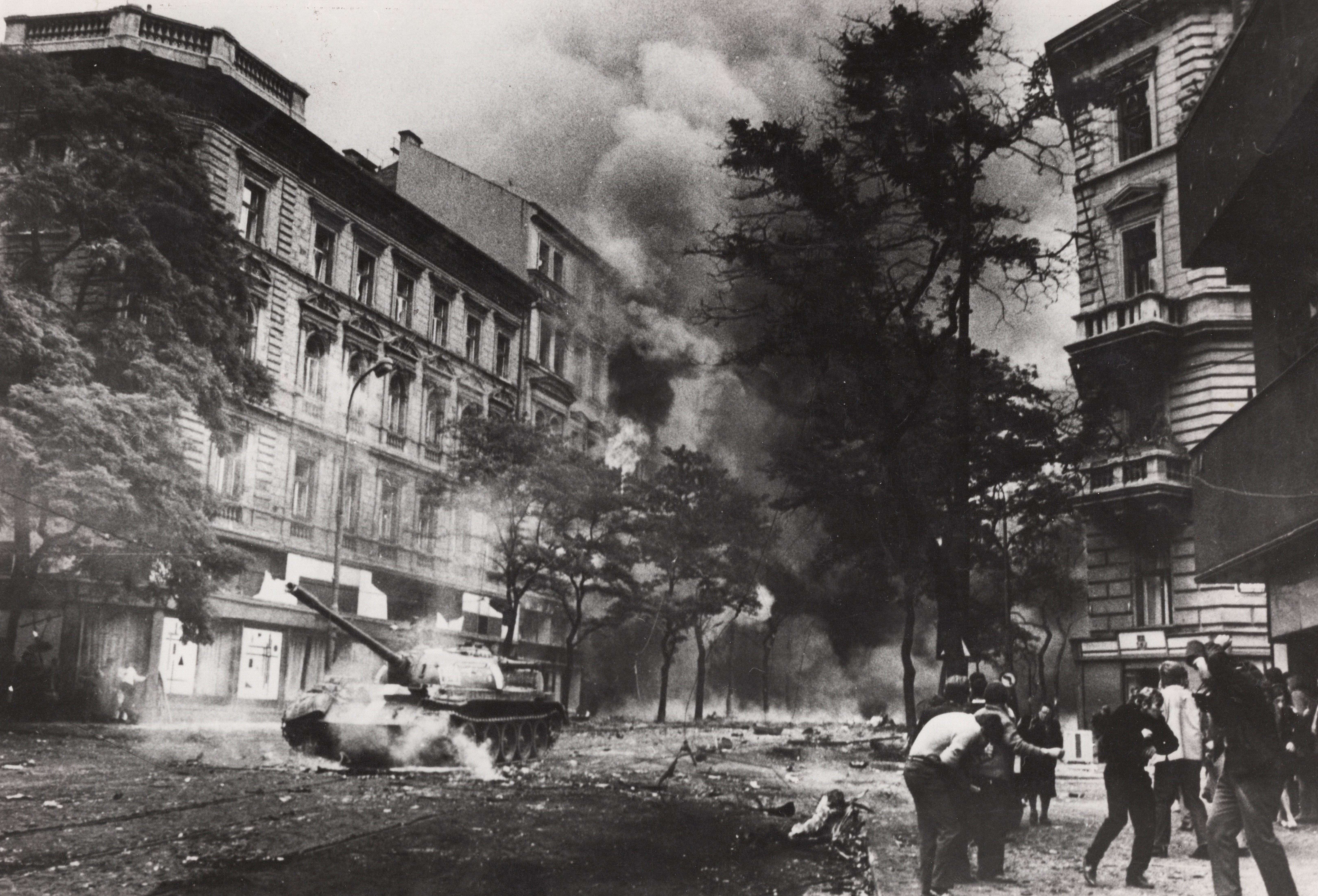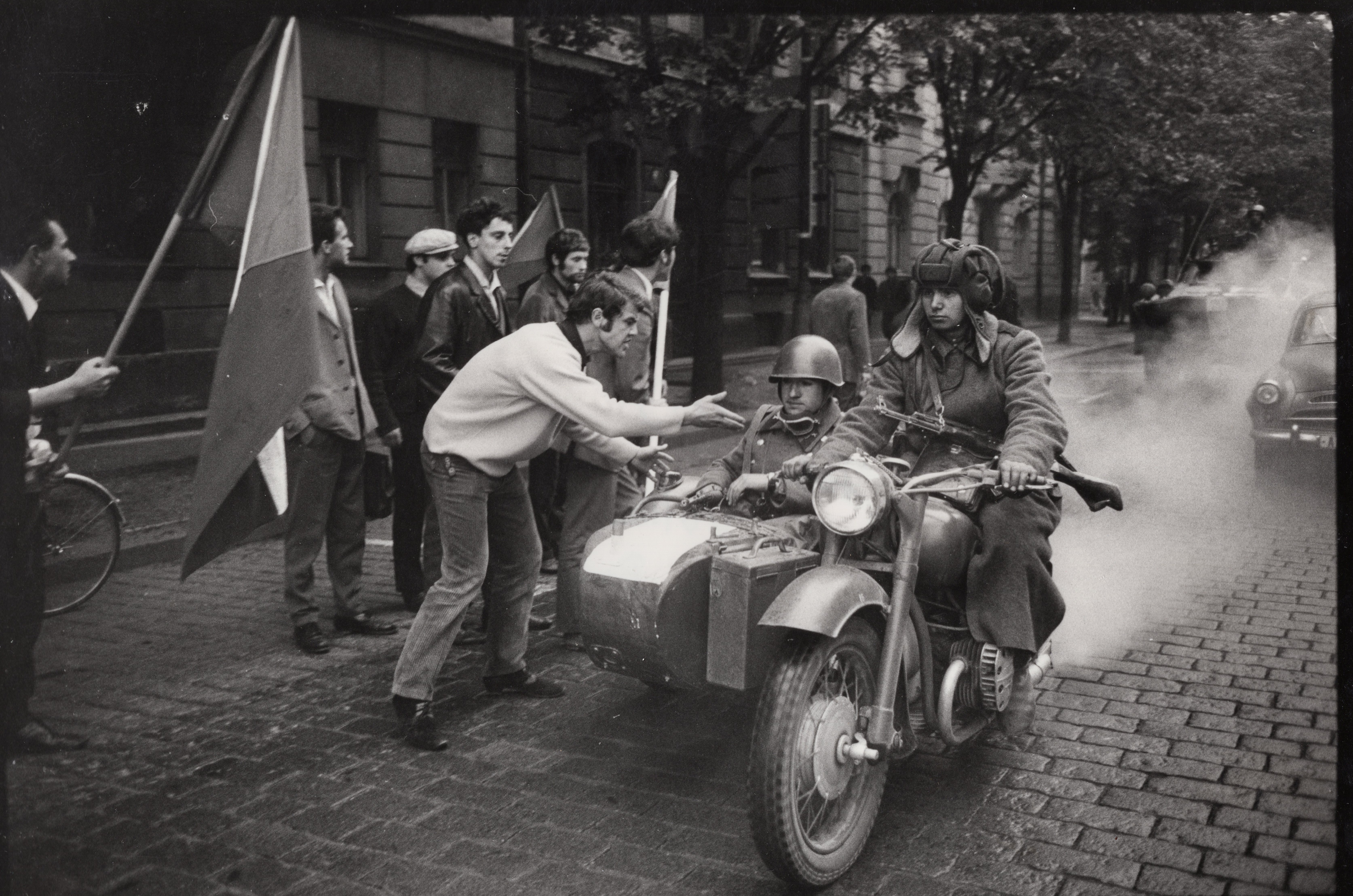 • „Šli jsme se podívat k rozhlasu, co se vůbec děje. A tak jsme byli u toho, ležely tam první oběti. Dva mrtví kluci, kteří byli napůl přikrytí, ve výklenku u rozhlasu. Stálo tam asi sedm ruských aut. Chtěli jsme jít zpátky do auta, jenže zrovna přijížděl tank. Na kraji přejel a rozdrtil autobus. A vpředu na tanku seděl střelec, vidím to jako dnes, byl to nějaký Turkmen. Pak nevím, co mě to napadlo, no skaut, tak jsem říkal: ‚Franto, ten tank na tu vlajku nevjede.‘ Tak jsem po ní skočil k chodníku, koupil jsem to do ruky ze samopalu. Vlajku jsem si dal do podpaží a utíkali jsme se schovat.“
