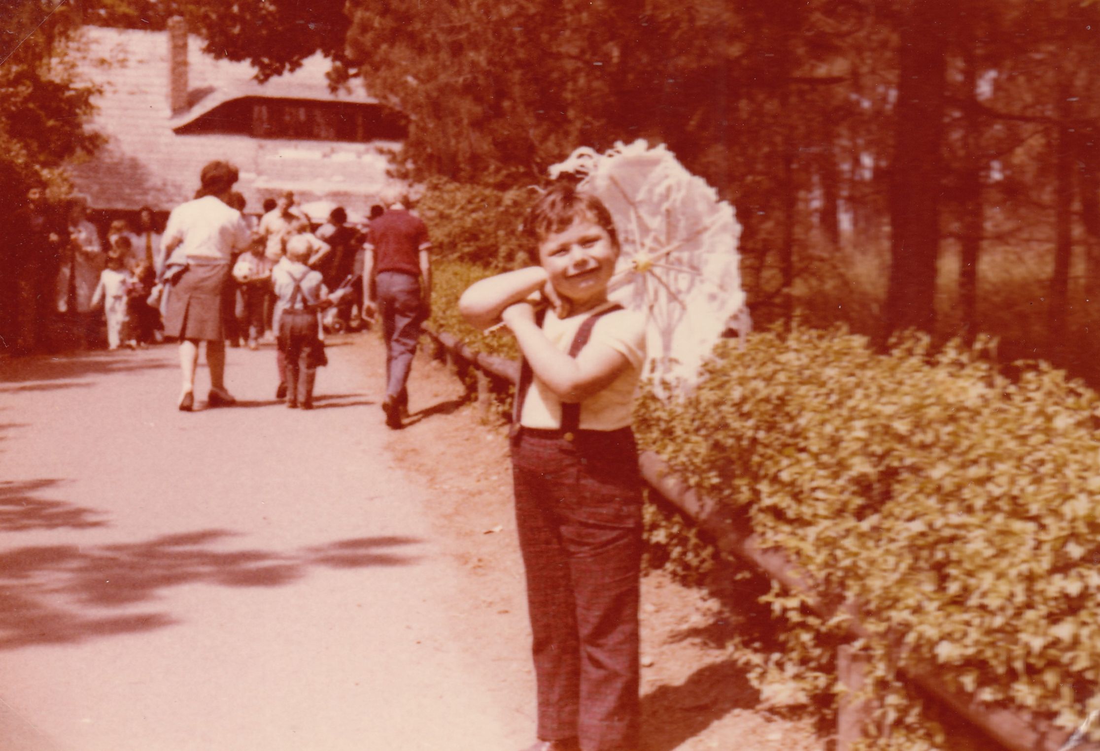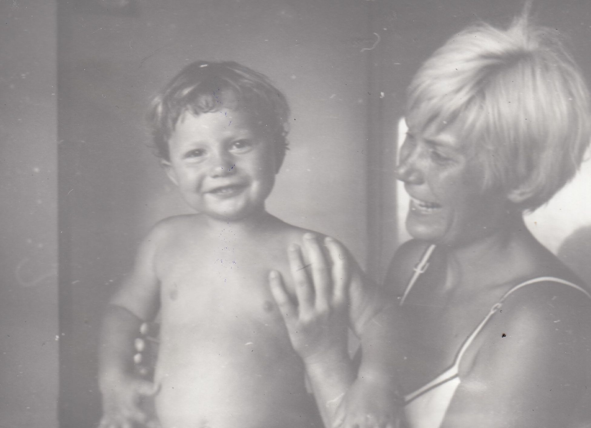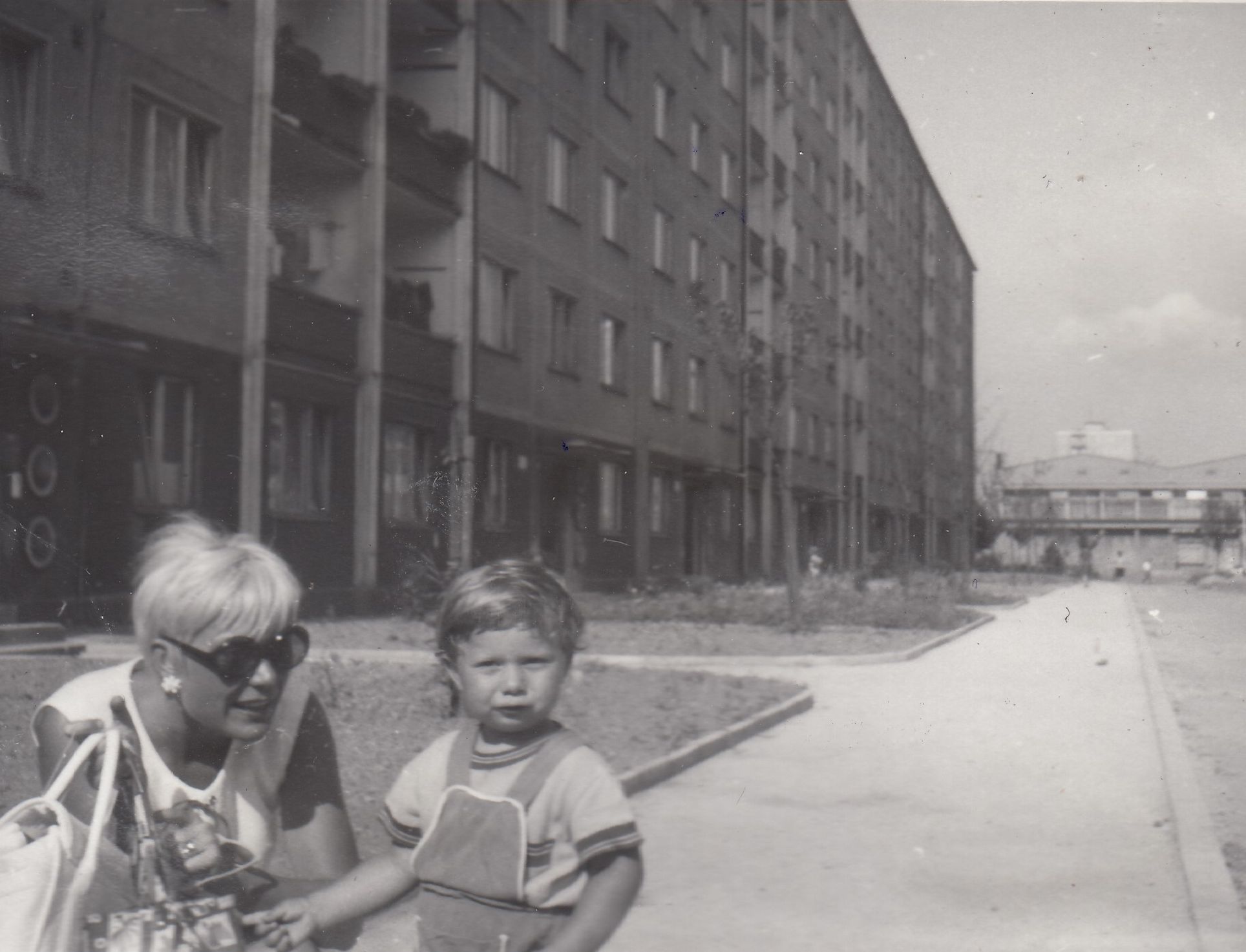 Jiří Podlipný jako malý chlapec se svou maminkou Květoslavou na rozestavěném sídlišti v Tuhnicích v Karlových Varech, na fotografii je v dálce vidět nákupní centrum Meteor