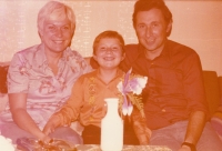 Jiří Podlipný s prarodiči na chalupě v Suché u Nejdku v Krušných horách, kterou dědeček pořídil po tragické smrti svého syna Jiřího Hodana, přibližně v letech 1974-75