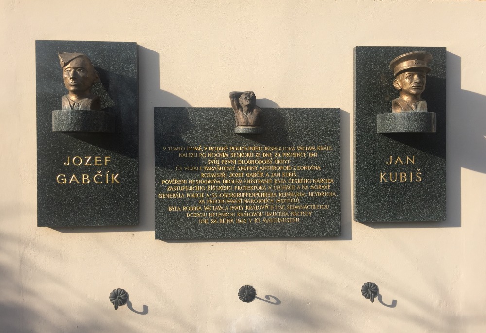 Unveiling of the completed Memorial to the Král Family in Pilsen, Pod Záhorskem 1, the memorial plaque from 1999 was supplemented by busts of Jozef Gabčík and Jan Kubiš made by Stanislav Bukovský