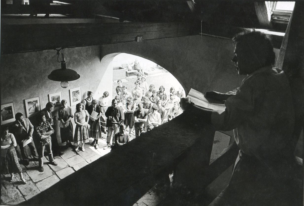 Jiří Hůla was born on June 7, 1944, in Prague, but spent his childhood in Kostelec nad Černými lesy, where his father came from and where the family moved when Jiří was three years old. In the mid-1960s, he joined the Faculty of Education of the Palacký University in Olomouc, where he studied mathematics and physical education. Until 1974, he lived in Ostrava and commuted to teach in Hlučín and Opava. At that time, in addition to writing for the local editorial office of Czechoslovak Radio, he began to engage in experimental poetry and collage rearrangement of existing images. At the end of the 1970s, he started working in the Computer Technology Company with Josef Volvovič. They created computer programs that modified inserted poetry or fiction based on a random number generator or other mathematical algorithms in their spare time. At that time, Jiří wrote columns about contemporary Prague exhibitions in Svobodné slovo and Gramorevue magazine. In 1983, together with his brother Zdeněk, they founded Gallery H, located in the church building where they both grew up. Subsequently, several significant authors of the post-war generation and emerging postmodernism exhibited in the alternative space. In 1988, however, the Hůlas discontinued the gallery due to the changing social atmosphere, which no longer required the excessive division of culture into official and unofficial spheres. After the Velvet Revolution, Jiří was very active in the local Civic Forum. In the 1990s, he returned to writing about fine arts. Until recently, he had his own program on Czech Radio. In 2014, he was nominated for the Award of the Ministry of Culture for his long-term contribution to visual arts. Jiří Hůla died on 23rd September 2022.