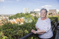 At a wiev point at Vyšehrad, from where the witness is looking at the house of Josefa and Jindřich Bautz, her aunt and uncle, in Lumírova Street. June 2022