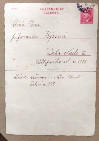 Proof of posting of a letter of Josefa Bautzová from the Gestapo Prison in the Small Fortress in Terezín, dated 4th November 1942, when she was already dead but Božena's mom did not know it yet.
