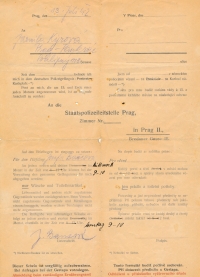 Apprenticeship certificate of witness' father, Josef Kýr, which attests that he apprenticed as a sausage maker at Emanuel Maceška, a well-known sausage maker in Prague and the owner of Maceška Palace in the Vinohrady neighbourhood