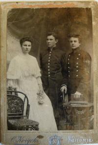 Nina Kohlíková, née Medunová, was born in the year 1924 in Volynia, in the Bohemian village of Mirohošť. She had two step brothers - Evzheni and Dimitri Somol. Their father, Josef Somol, was put to death by the Bolsheviks in 1917. After his death Nina Kohlíková’s mother, Antonie Somolová once again remarried to Václav Meduna, a peasant farmer from Mirohošť. The family had a relatively large farmstead and apart from this they also ran a restaurant after Josef Somol. After the Soviet occupation in September 1939 the family lost their restaurant and farmstead. But after the German invasion in June 1941 the Soviet Collective farming was abandoned which meant that they could again reclaim their farmstead and livestock. But these were evil times and people were afraid of the Germans and even the Ukrainian Nationalists. In the year of 1944 the front line had returned and Soviets again conquered the territory of Volynia. Nina Kohlíková‘s brother Evzheny, a pharmacist escaped to Krakow. With the rise of the 1st Czechoslovakian armed brigade her second brother Dimitri willingly signed up and entered into the army. He remained loyal to the army right up until his retirement. In the year 1947 the family decided to emigrate to Bohemia. They settled in the Litoměřic region where Nina entered into the teaching profession. In 1953 she married a soldier from the military, Jiří Kohlík. Because he was divorced with three small children it was an arduous task to take care of four children as they had increased with the birth of Nina’s own daughter. At the beginning they all lived in Pilsen, then at Horšovský Týn, Chodov u Karlových Varů, and finally in the town of Litoměřice.