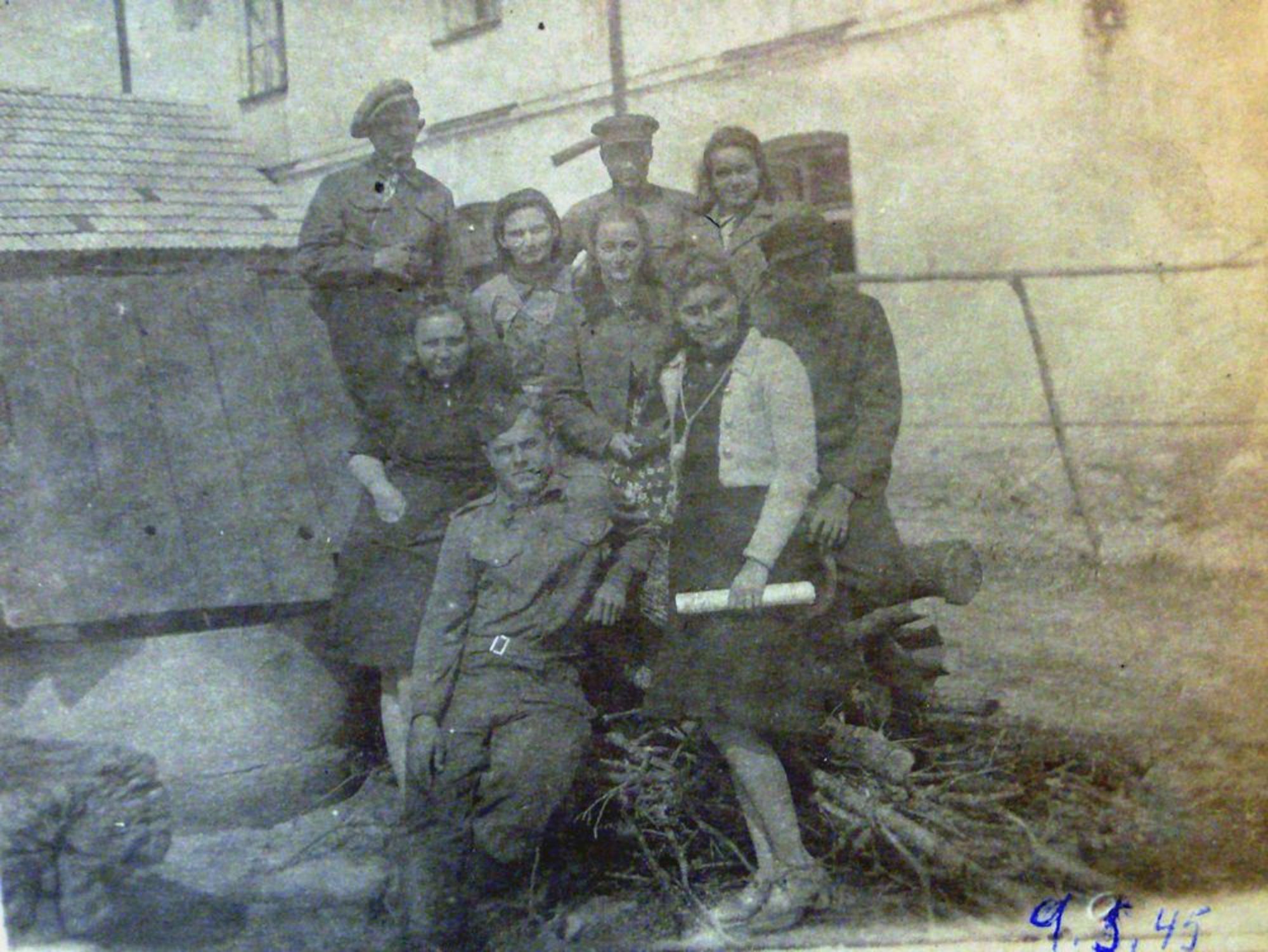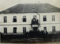 “The hall was used as a car repair garage. [Quite, and anyway you speak about these people who were being kept safe there?] Yes. [Well, so when you began to talk about this, so if you could say from the beginning what you meant? There they had the Sokol House and in this House there was established a German repair garage and at the same time they created an asylum for Jewish families. So if you could give some details about these families, and about what went on where they were sheltered?] Well, I’ll show you. This hall was big and there was an elevated stage. Well, and under this stage they made a entrance and so on, and well, I can say how they got food there, for example from this window poking through the stage boards, they were looking out what was there, really, then one crossed the other side, went into the village, secretly of course, and I remember, someone in the evening came to us and knocked and then Dima went to open it and well, it was a normal fun evening in the family, and when he came, so mummy said, who was it?’ However, it was a neighbour. ‘Here we had a food store, on the left of the door we had this food store and there was, I don’t know, twenty loaves of bread, flour and so on, so he put there more things then left and… Also later when the Soviets came, so they were sent out and he came to us and said mummy, don’t cry (mummy didn’t know about her brother in the army), so don’t cry, surely nothing has happened to him.’ Me neither, really. [Still, could we add some detail, the name of the Jewish family?] The Volk family, I don’t know more.”