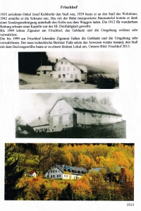 Franziska Krampfl was born on 14 May 1931 in Hojsova Stráž (Eisenstrass in German) and spent her childhood in the municipality of Frishwinkel (Brčálník today). She comes from a family of royal freemen who had enjoyed a number of rights and privileges since the Middle Ages and even had their own coat of arms. She grew up on the Frischhof family farm and started school in 1937 while it was still Czechoslovakia, but even then they didn’t learn Czech, since there were no Czechs in the surrounding area. The Second World War impacted the region mostly by draining it of men, partially supplemented by foreign forced labour. However, her father, Josef Kelnhofer, was not required to enlist as he was proclaimed an essential person for economic reasons. In the last months of the war, Franziska remembers the transports of concentration camp prisoners and German refugees from the eastern regions. After the war the barracks closed to the farm were occupied by the Czechoslovak Army and the rumour started spreading that Germans would be expelled. In response, the Kelnhofers began moving their belongings across the border to neighbouring Bavaria. In May 1946, they were among some of the first to be deported via the Alžbětín (Eisenthal) camp, because the barracks commander was interested in the farm. Franziska’s first visit to Šumava following that was at the end of the sixties. She comes back there to this day and tends to her grandparents’ grave in Hojsova Stráž.