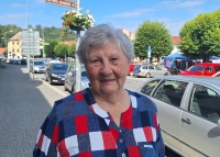 Olga Kroupová was born in 1935 in Moutnice. Her daddy held the post of mayor. When a sign saying “Hitler is an asshole” appeared in the village, they arrested him first. He was imprisoned in Cejl for a month and a half. When the Soviet army arrived, she and her family hid in a home bunker, opposite which stood a German sniper. At the time of filming (2024) she lived in Ledčí nad Sázavou.