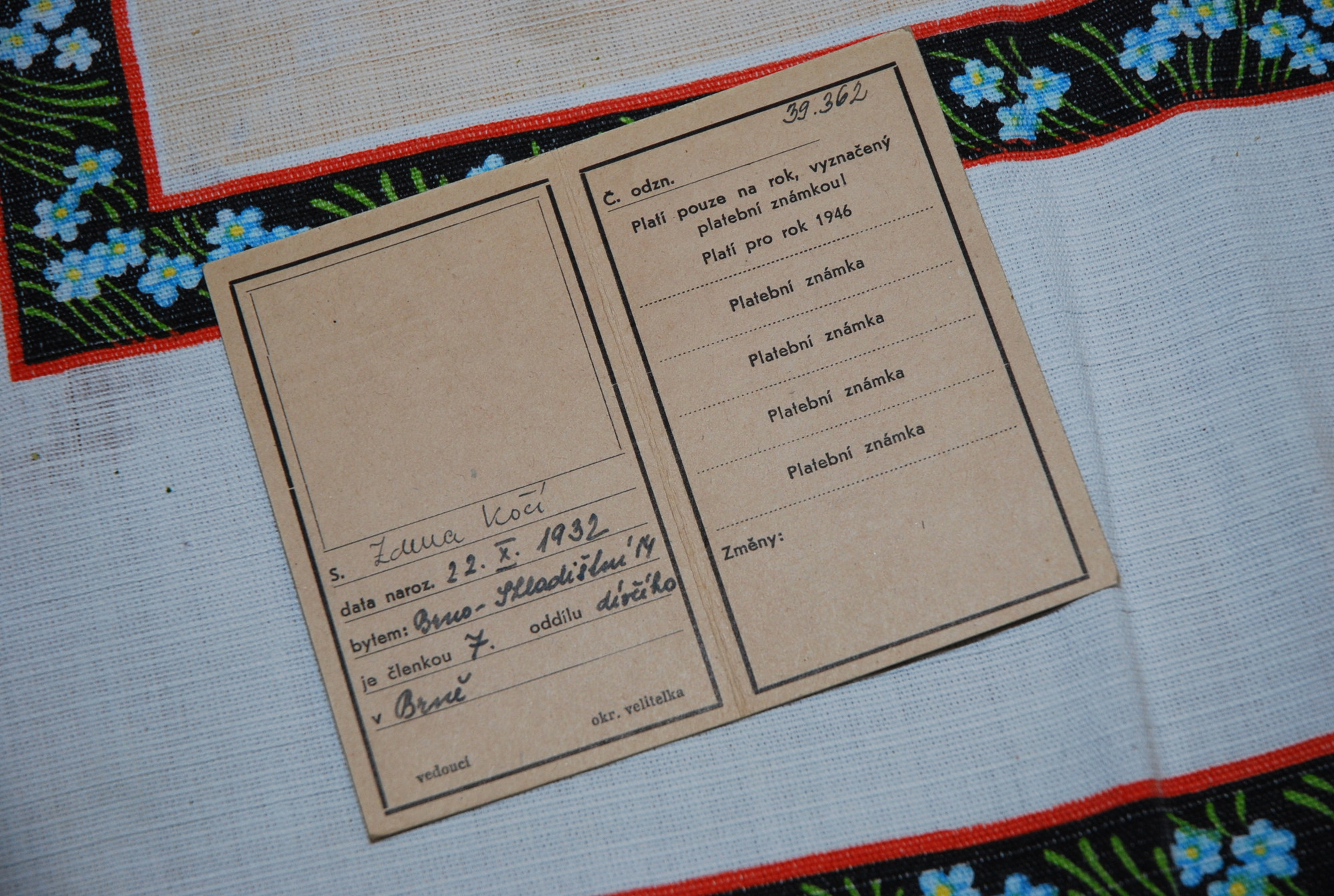 Zdeňka Kurková, aka Muchomůrka (“Amanita”) among the Scouts, was born October 22, 1932 in Brno. She joined a Scout troop in 1946 and she participated in her first camp in the same year. She experienced three wonderful years with Scouting; after the ban and the subsequent revival of the Scouting movement she has not returned to it anymore, but she still likes to remember the time she had spent in the Scout troop. She worked at the Faculty of Engineering of the University in Brno.