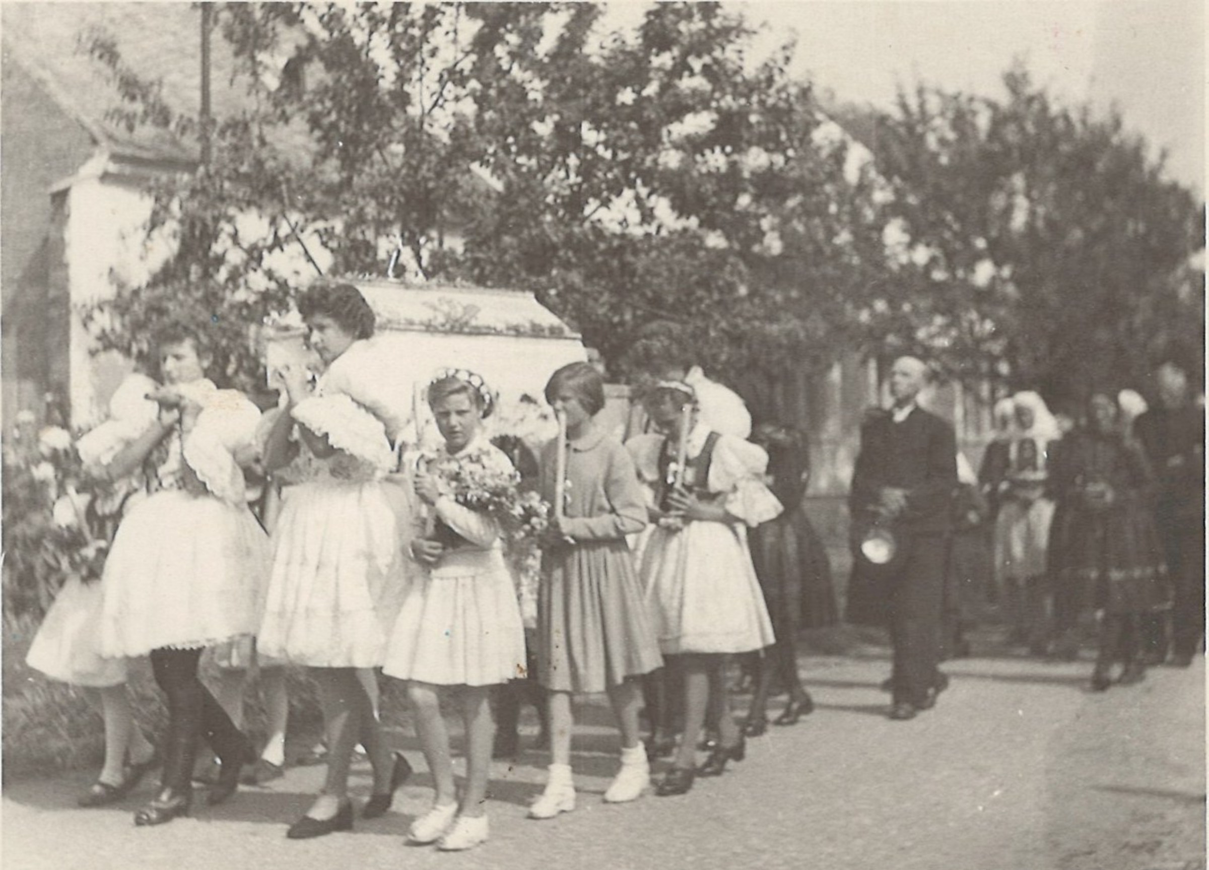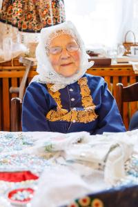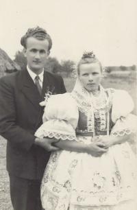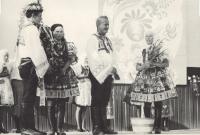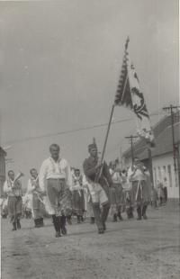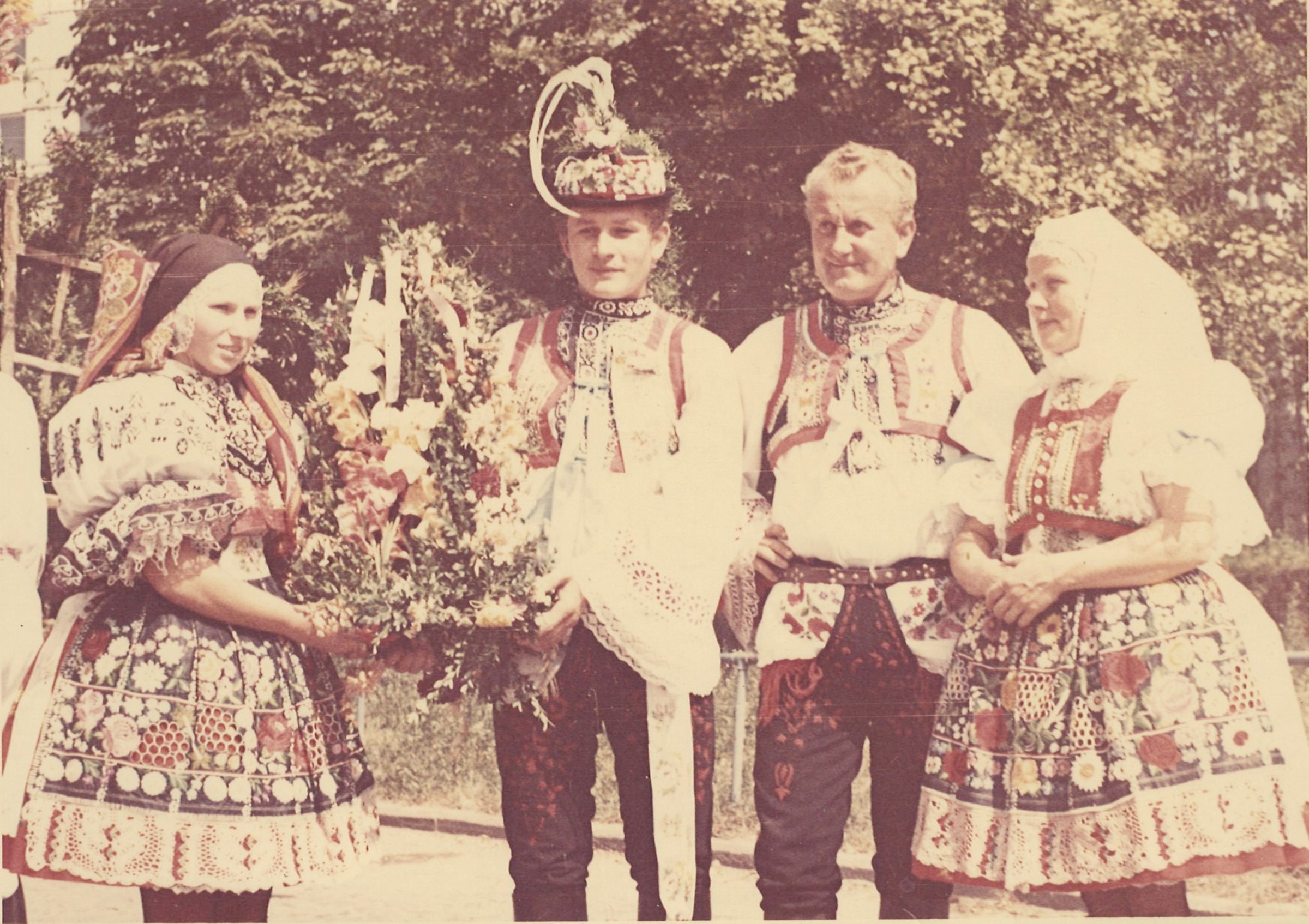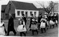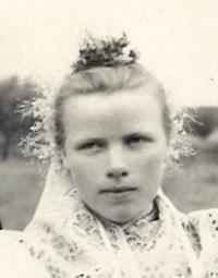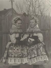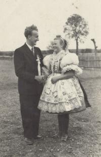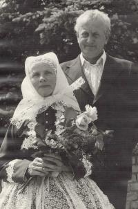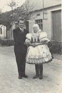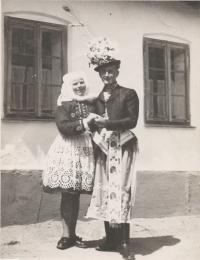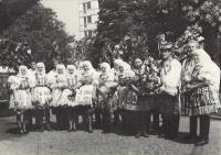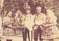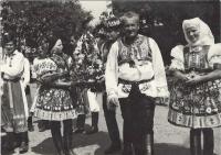 „There were three tickets for the parish here. So the three of us travelled. I did not have a passport, so I went to Hodonín, I had to take a picture and went out to arrange it, and they were laughing, but they did not make any trouble anymore. Maybe they could see that it was going down, so they promised that at midnight we would be back on a special train in Brno, there were three trains prepared out there. And at about twelve we were in Břeclav, but now the customs officers have asked us for goods to declare. Moravian-Slovac region can never go without wine. So off we went. Then, when it was ringing the next day at noon, we arrived in Rome. We prayed and sang.” – “You went to Rome for St. Agnes´ sainthood. How do you recall this particular event?” – “it was very nice and there was much enthusiasm. I had a lot of talk about it, and then it was on TV too, we already had a TV, and I said, "Look well, girls, I was sitting behind that lady, she was also dressed in Kyjov's costume.” We had a great deal of push as we were in costumes. So they encouraged us: "The ones in costumes should go forward ... right behind the nuns.” The priests, nuns and those in costumes were sitting down. I sat in the third row behind nuns. We were excited. Then we went to the audience, as planned, and we sat there in that hall, and František Tomášek suddenly rushed in there. And the Holy Father... He went and the first... there were those, who were from Slovakia, and with the Slovaks we were there together... there were ten thousands of people.” – “You felt just like one family.” – “Indeed we did. So we smiled at each other and handed our hands for a quiet greeting. And then the Father stood up, and he welcomed our Father first. Well, it was a good feeling for us as we thought that he would be the closest thing to the Holy Father in his heart. But when we drove back, it was so enthusiastic. We had already gathered, that was three trains, and I do not remember the station where we met, and the windows were opened, and they called out to each other: “There are nine holes in Berlin in that wall!” They´ve already started breaking down the wall and there was one Marian song heard from carriage to carriage and we were already singing, we were not afraid anymore.“