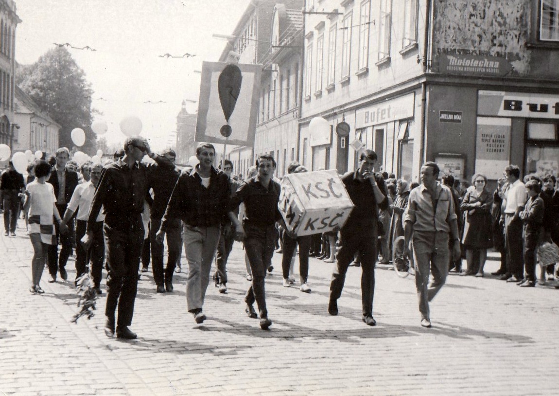 “The school janitor’s wife, a Russian, was visiting mum. I remember her sitting at the table, crying and saying: ‘They’ll just hate us from now on.’ Mum was sad about it and the janitor’s wife was sad – the atmosphere was so gloomy, I left quickly. Not knowing what to do, I couldn’t think of anything better than going towards the [Czechoslovak] Radio building. The Radio has always resided in U Trojice street. People were hanging around, and the broadcast was on in the street loudspeakers, constantly updating on the movements of the Russian troops. Tanks had already arrived in Budějovice, but we stayed in front of the house. There was a preschool next to the radio house, so the radio employees decided to pretend the preschool was in the radio building. They wanted to keep on broadcasting even if the occupation army came. People started taking children’s benches and wardrobes to the radio building, and the radio pretended to be a preschool for some time. I was just standing there, fascinated by the developments, and I saw the tanks. I actually walked home past the tanks, and I even shouted at a soldier who was watching me from a tank. I knew Russian well, so I shouted in Russian: ‘Invaders, go home!’ He looked at me, and I saw tears rolling from his eyes. He was crying, and everybody around me was sad. I came home; mum had arrived earlier from the afterschool club, she had no idea where I had been, and was terribly worried. The first thing that happened was a slap from my mum – the last in her life, or maybe the last motherly slap in my own life – because she was just so happy to see me alive and well. To me, amidst the general misery, the slap simply sealed the insane feeling of that day: the feeling that the beautiful future I had been building since early childhood was actually over.”