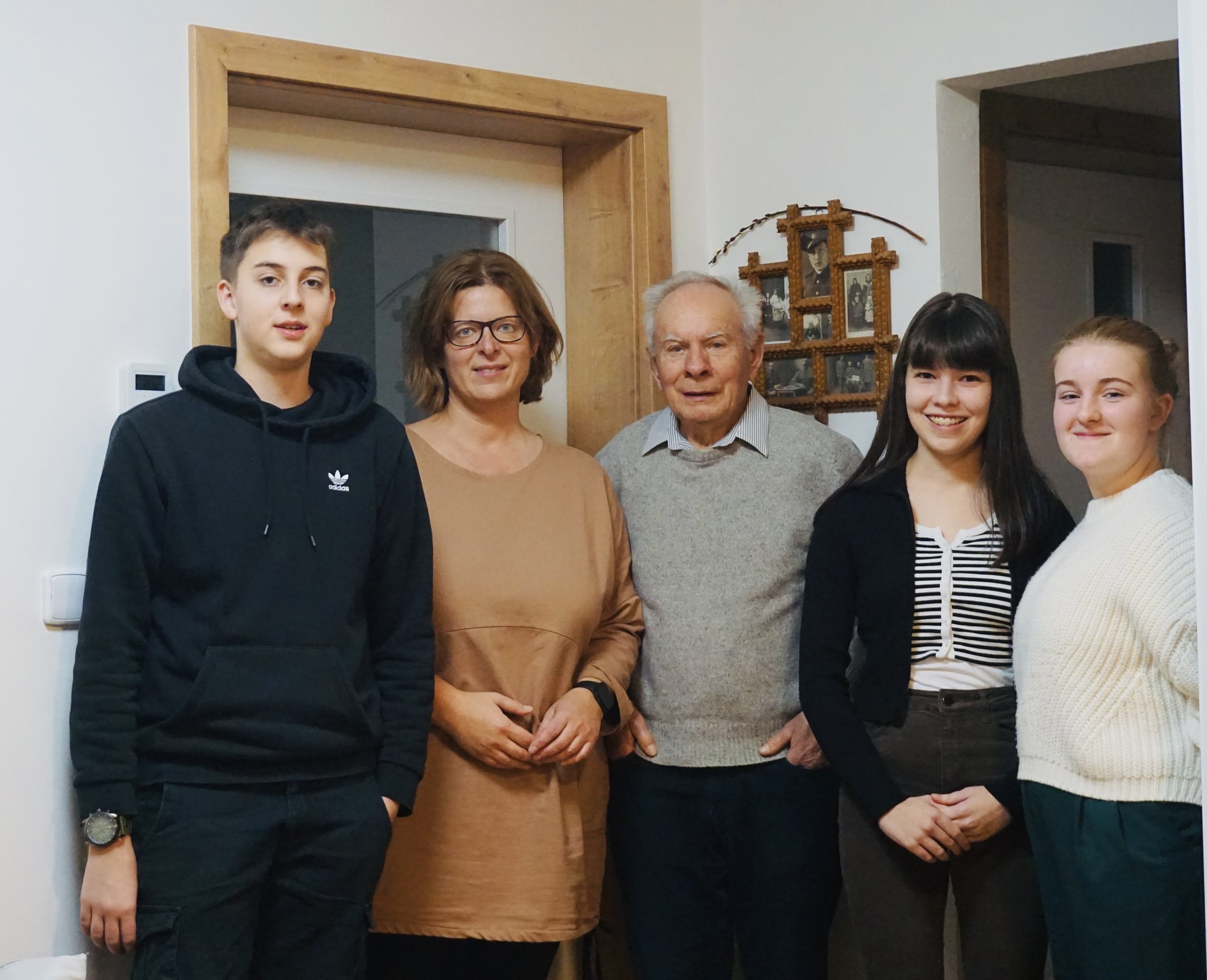 "So the guys there spotted two Germans walking towards our cellar, and we all had to go into the cellar immediately. They threw corn on the door as a bit of a disguise. And now we waited to see what was going on, in the naive hope that maybe the Germans hadn't noticed us. They had noticed us, and even though they knew there were no soldiers there, that there were civilians, they fired several shots into the cellar through the closed door. Basements are sometimes made so that the first part is straight. The cellar goes on and sometimes it's just sloped and then there's just a straight part where the barrels are and that. The Germans thought that the cellar was designed so that there was this sloped part down, and when they shot, they shot down. Aunt Pláteníková was sitting right against the door, she had Oldřich in her arms, and the dog was lying at her feet, and the bullets, as the Germans shot there, killed the dog. Unfortunately, fortunately, they didn't realize that if they had fired five meters or a meter higher, it would have gone badly. I don't know why they did it, because it was less than a month before the end of the war, and here such casualties would have been unnecessary."