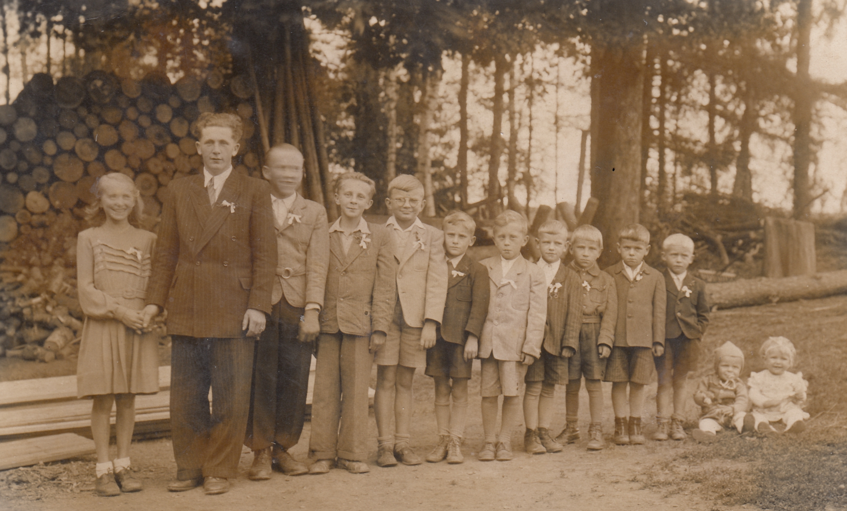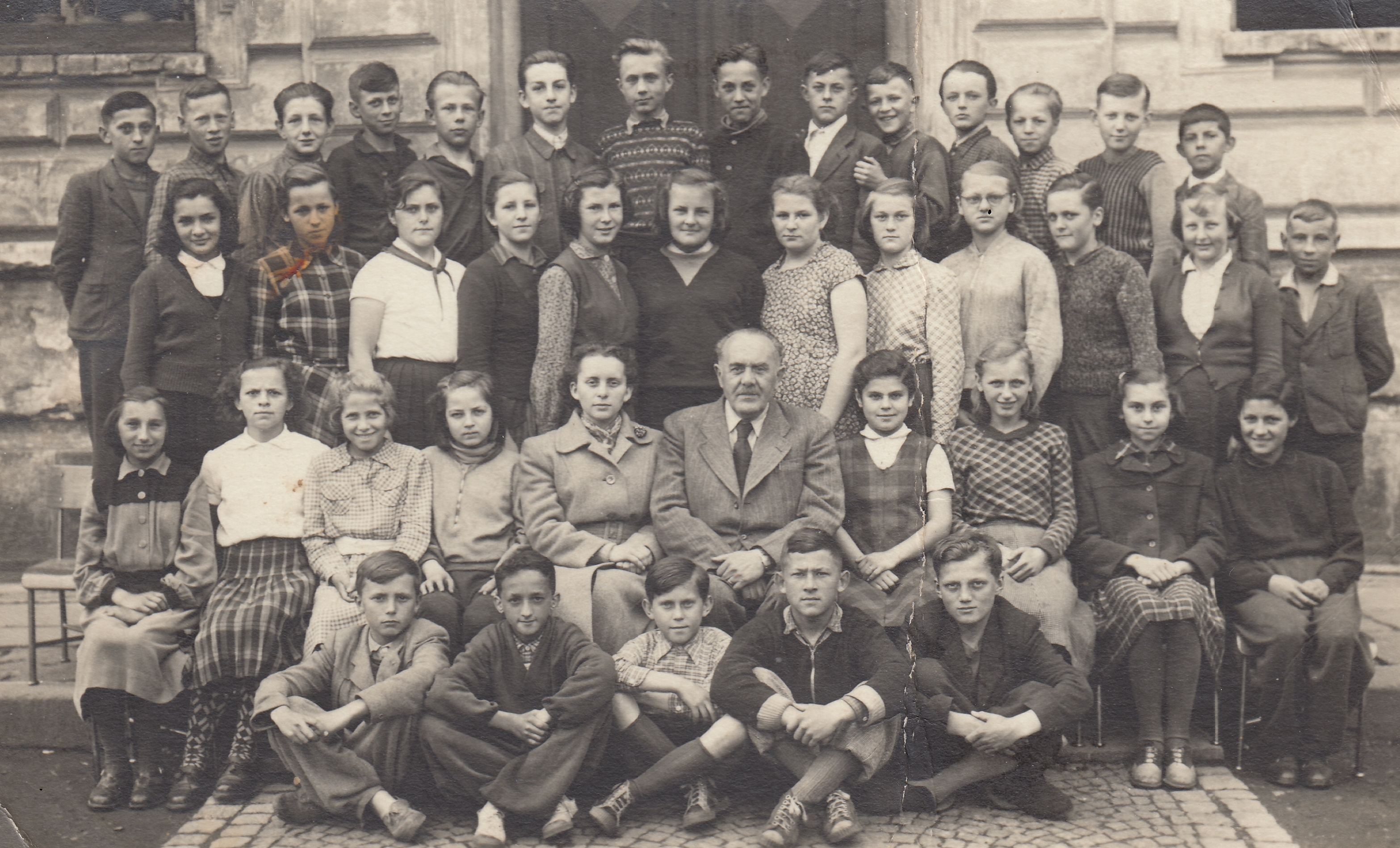 Photograph for the anniversary of ten years of the Infant Institute Luhačovice, Stanislava Petrželkova sitting in the bottom row, second from the left, fifth from the left the head of the Institute MUDr. Marie Damborská, CSc., 1964