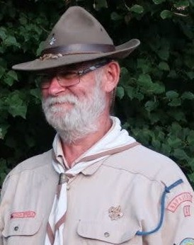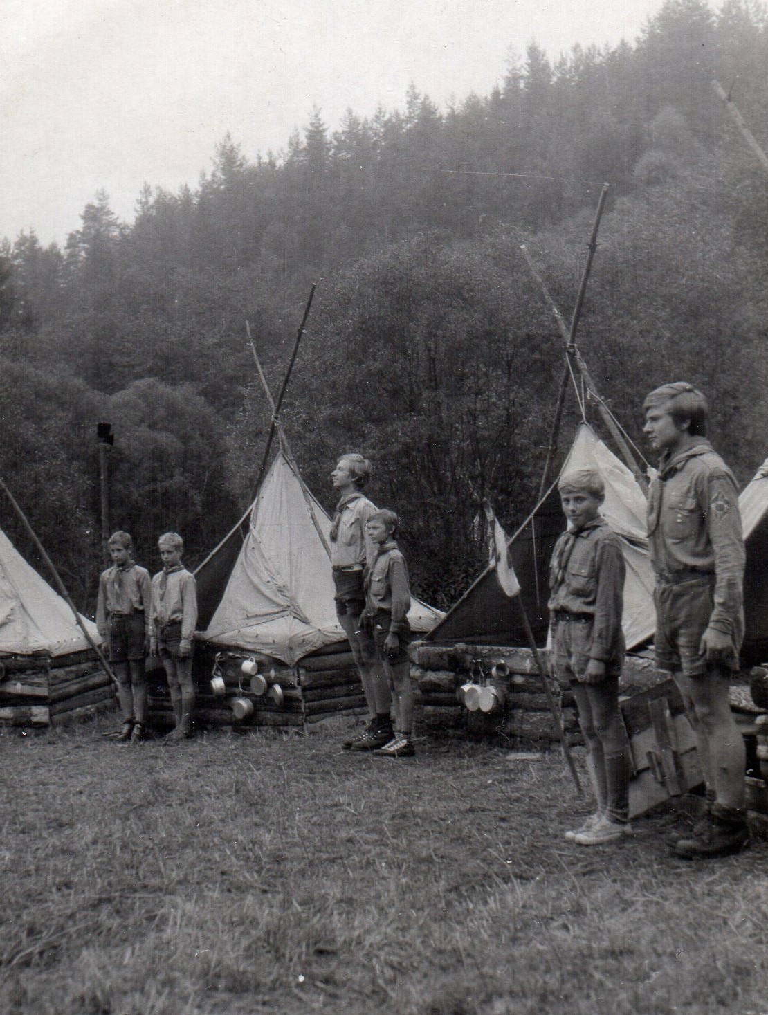 Ladislav Oliva is photographed at the outdoor banner for the Obora exhibition Glass 67 in Prague's Old Town Hall. His design was realized by the Bohemia Glassworks in Poděbrady.