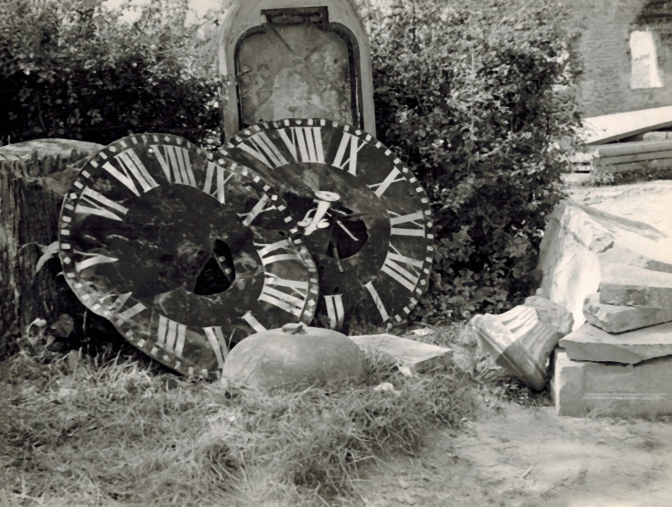 Dial of the hrabyně church clock, 1945