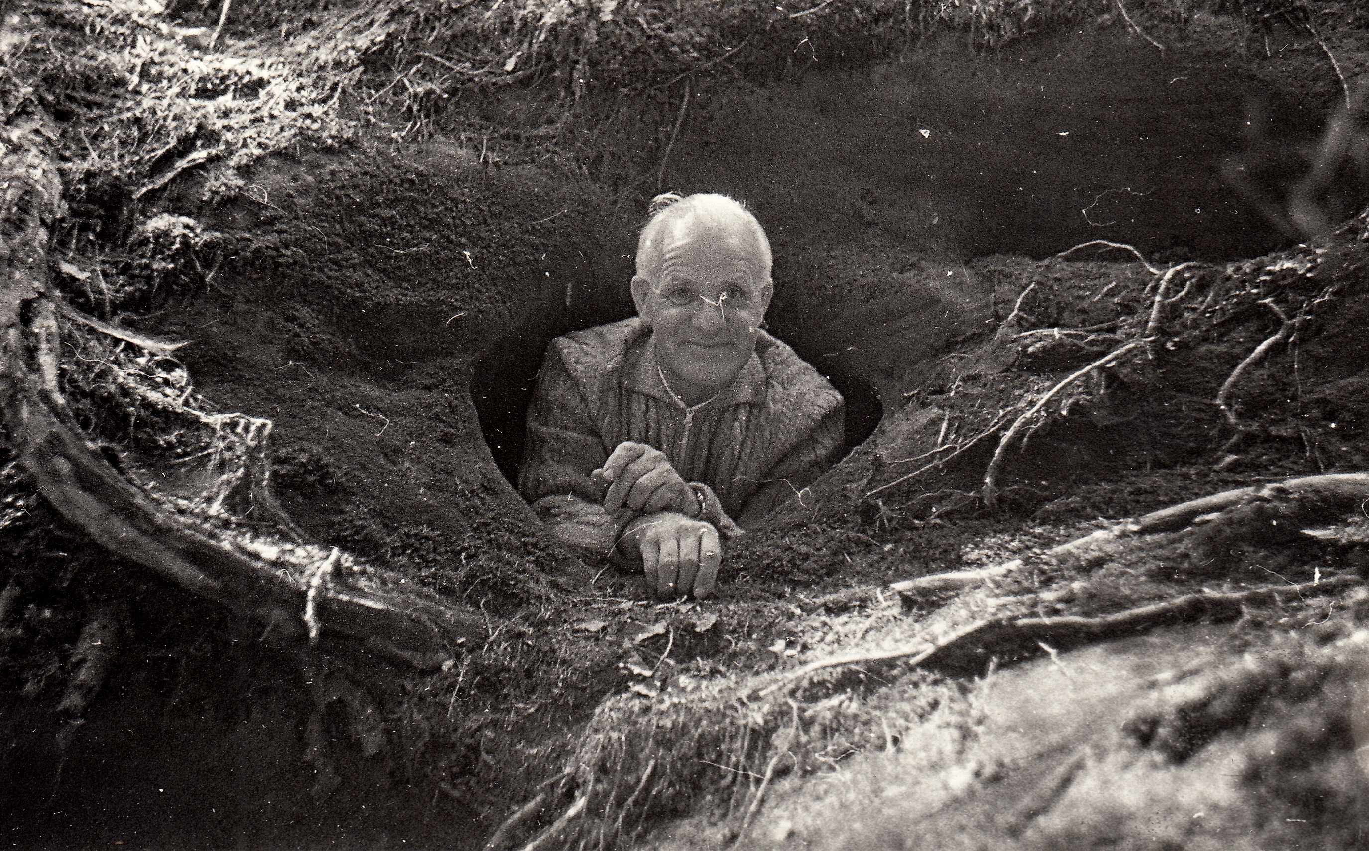 František Drbohlav in the soldiers' hideout during Albert Pooley's visit to Doubravice 1968