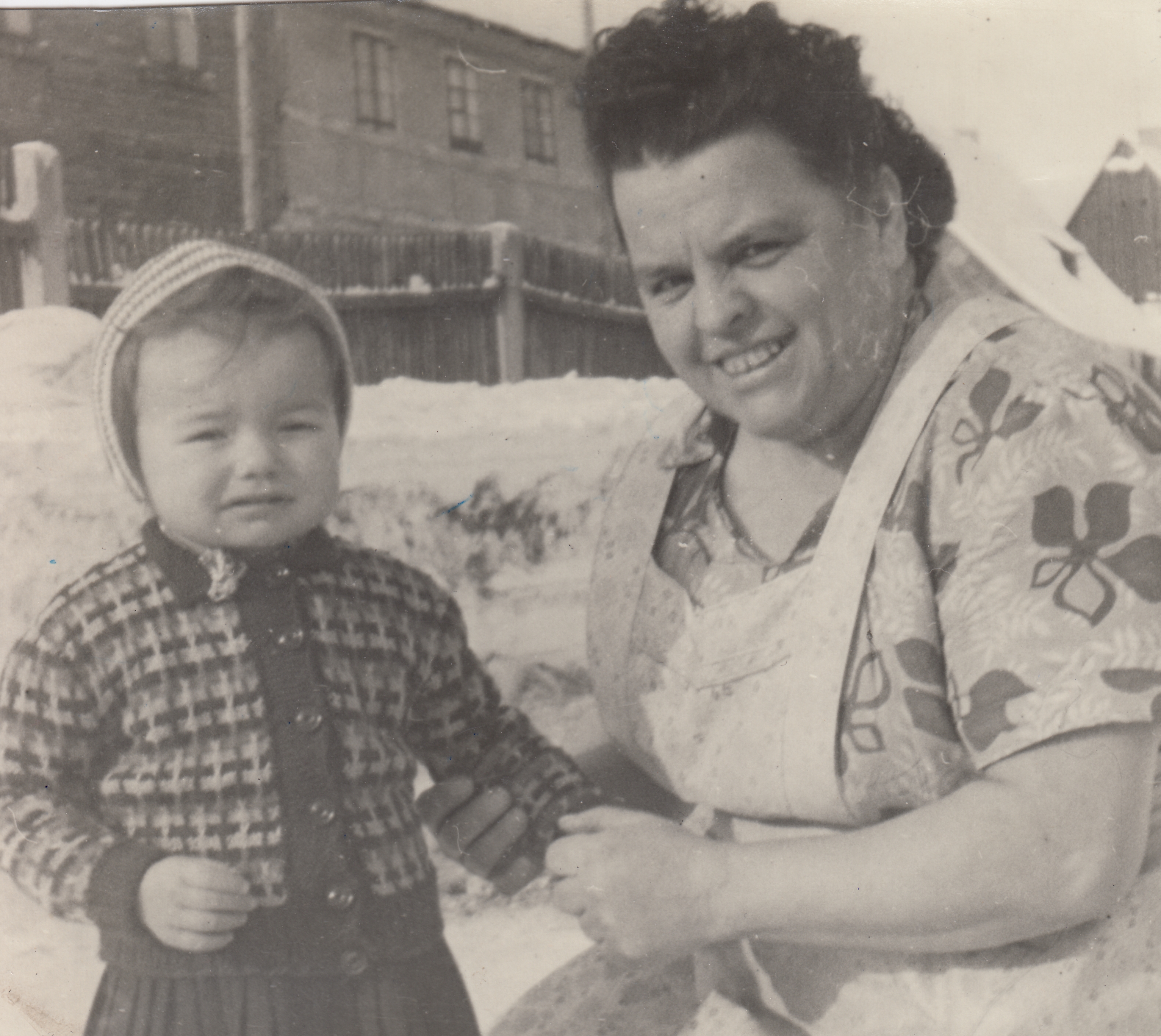 Little Jana with grandmother Maria Bendelová, Hřebečná, winter 1954