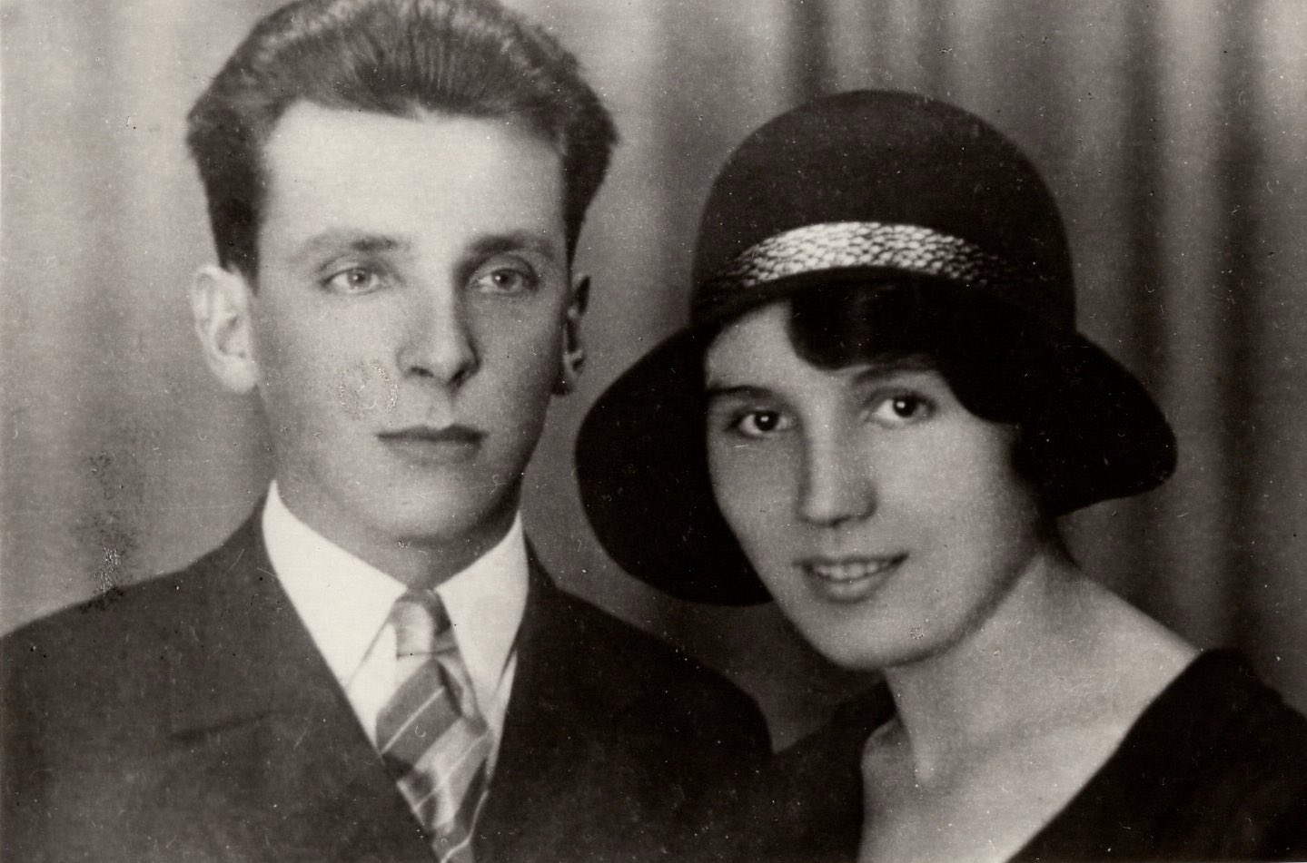 Ludmila's brother Josef's wedding (1946). Ludmila is on the bottom left in a white dress. Top left is Alois Pohůnek - a relative who was later beaten to death as part of the Světlana action
