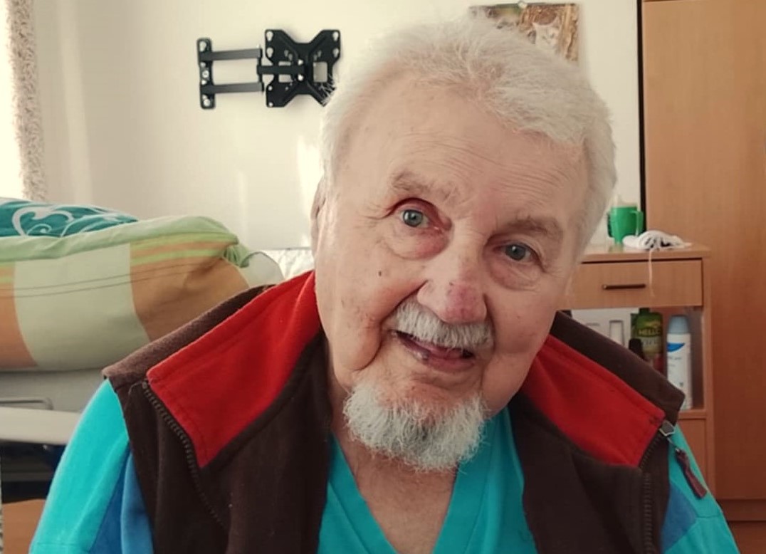 Václav Lukášek during the filming for Memory of Nation, Na Valech home for the elderly, Šternberk, 2025