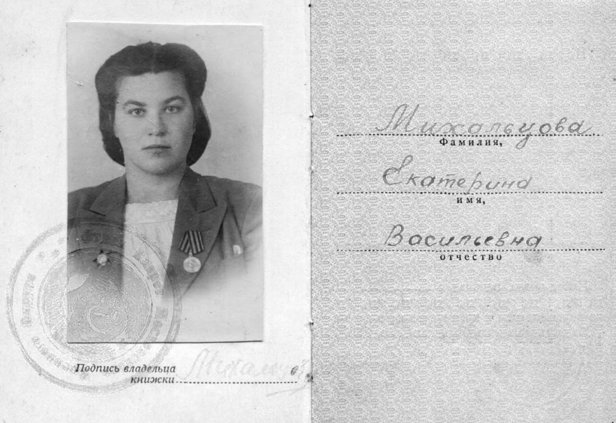 Kateřina Polášková was born on 22nd October 1922 in Teremno in the Soviet Union. She attended school in her hometown and in Moscow. She wanted to become a chemist. Her brother passed through tank division training and he served as a commander of a tank brigade during the war. She joined the army as a volunteer in 1941. Given the lack of training schools, volunteers were enrolled as auxiliary forces in medical units. Kateřina passed the basic medical training. She volunteered to the parachute units and was enrolled but her health prevented her from participation in the military operations. She was placed to a munitions magazine. Then she ran an officers club in ‘Serebreny’ bar in Moscow where she met her husband who worked in military intelligence but who was a foreigner (a Czech - author’s note). They had a son and a daughter. After the war, her husband obtained a permission to move with the whole family to Czechoslovakia. She worked for forty years as a shop assistant.