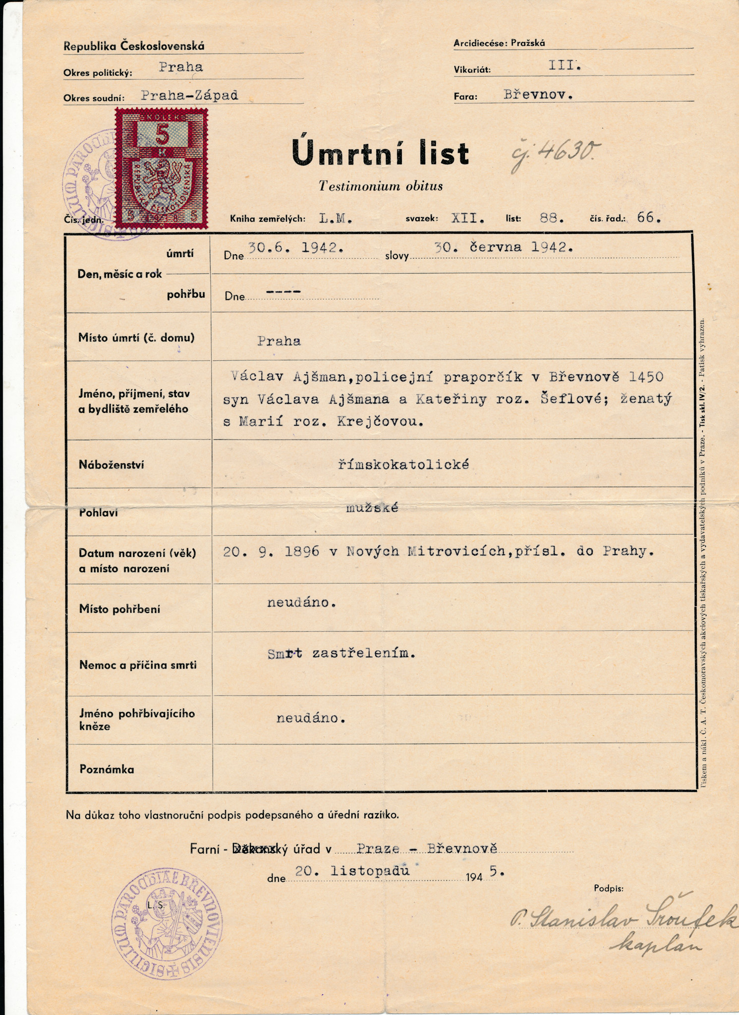 Václav Morávek hid with them under the name ” Teacher Mr. Malý”