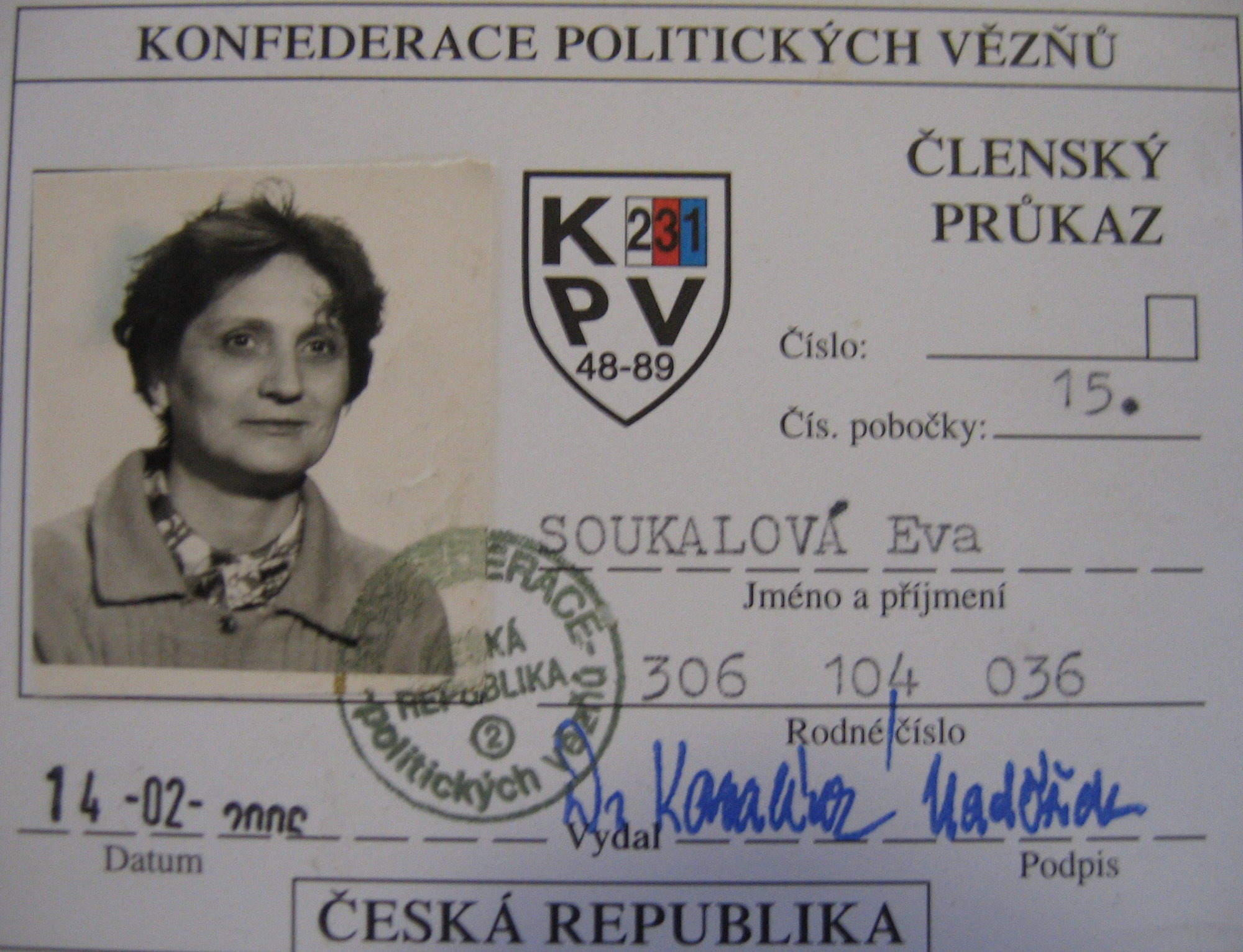 Eva Soukalová was born on 4th November 1930 in Prague-Michle to the post clerk Antonín Čížek and his wife Barbora Čížková, born as Svobodová. She lived a happy childhood because her mother was at home and dedicated her time to both the children. During the childhood, her world view was strongly formed by religious breeding both in the family and in the Sokol organization. The whole Čížek family was attending the Sokol regularly and the parents were members of the Czech National Social Party and the Czechoslovak Hussite Church. Eva’s father joined the resistance movement during the War. After the War he had serious health problems so Eva had to start working in 1945. She found a job at the office of the Czech National Social Party, where she worked until 1948. She witnessed the well known communist holdup when the employees were followed at a gunpoint even to the toilets. She was arrested on 10th of May 1949. Her parents found out about the arrest three weeks later when they received a parcel from the prison administration with torn and bloodstained clothes. In custody, she experienced severe physical and psychological abuse. The court with ‘Bursík and the group’ was held on 25th October 1949. Eva Soukalová was sentenced to eight years in prison. She passed through many prisons and labor camps: Pankrác, Kutná Hora, Červené Pečky, Molitorov etc. In Molitorov she suffered a serious arm injury. She was released on probation after more than four years. She worked in many workers’ and administrative positions. In 1956, she married Vítězslav Soukal and two years later they had two daughters: Helena and Eliška. Vítězslav died in 1978. Eva Soukalová lived together with her two daughters in Prague-Michel and was actively involved especially in the Czechoslovak Hussite Church.