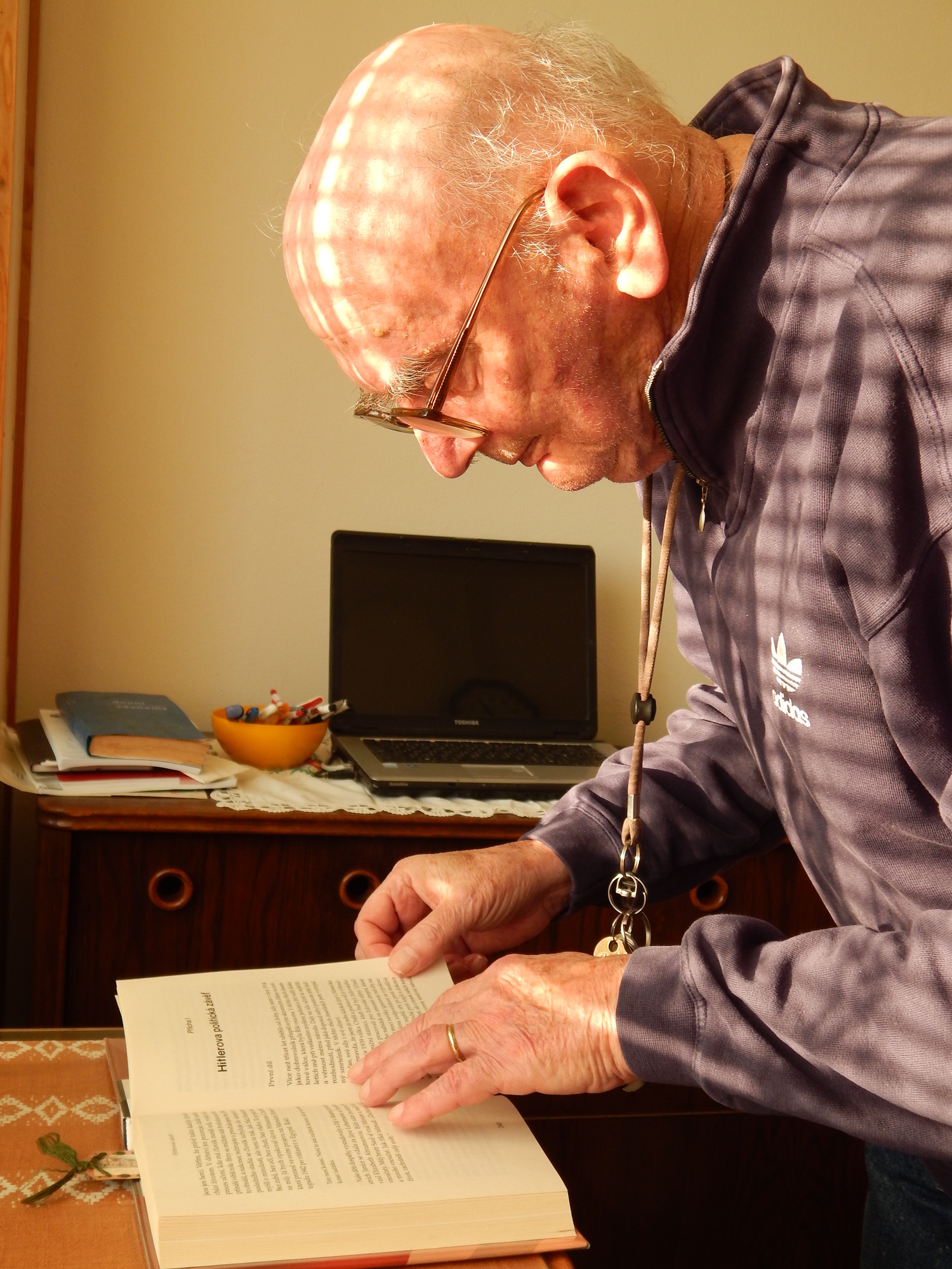 Než na nás došla řada, maminkami odpárala hvězdu z oblečení, a řekla mi, abych šel na nádraží, sednul na vlak. Věděl jsem, kam mám jet, protože jsme tam předtím asi dvakrát s otcem jeli. Měl jsem vystoupit v Novém Městě nad Váhem, tam přestoupit na motorák a jet do Vadovců. Vadovce byla obec, kde jezdila ještě železnice. Bylo mi čtrnáct let a dokázal jsem to, nikdo si mě nevšiml. Výhoda byla v tom, že průkazy byly od patnácti let, mě se to ještě netýkalo. Měl jsem s sebou falešný křestní list, který vydal senior evangelické reformované církve, abych se jím prokazoval. Nikdo ode mě nic nechtěl, dojeli jsme do Nového Města, tam jsem vystoupil z vlaku. Naproti stál vlak, transport německých vojáků, Červený kříž. Byly tam sestřičky a vezli je asi do Německa, do nějakých nemocnic. Byla tam spousta vojáků kolem těch sestřiček, bál jsem se, že to špatně dopadne ale nikdo si mě nevšiml. Tak jsem si sedl na nástupišti a čekal jsem až vypraví motorák do Vadovců. Pak jsem jím jel, ve Vadovcích jsem vystoupil a ptal jsem se přednosty stanice, jak se dostanu do obce. Byla tam tři údolí, v jednom jezdily vlaky, v jednom byla silnice a ve třetím byla vesnice, kterou jsem hledal. Pak mi ten přednosta řekl, že mám jít do údolí a doprava a přijdu do vesnice. Tak jsem tak šel, přišel jsem do vesnice, našel jsem jejich dům, byl uprostřed vesnice. Šel jsem do toho domu, oni už věděli, o co jde, čekali, že přijdu. Pan Klanduch s paní Klanduchovou se mě ujali a řekli mi, že budu schovaný na půdě.