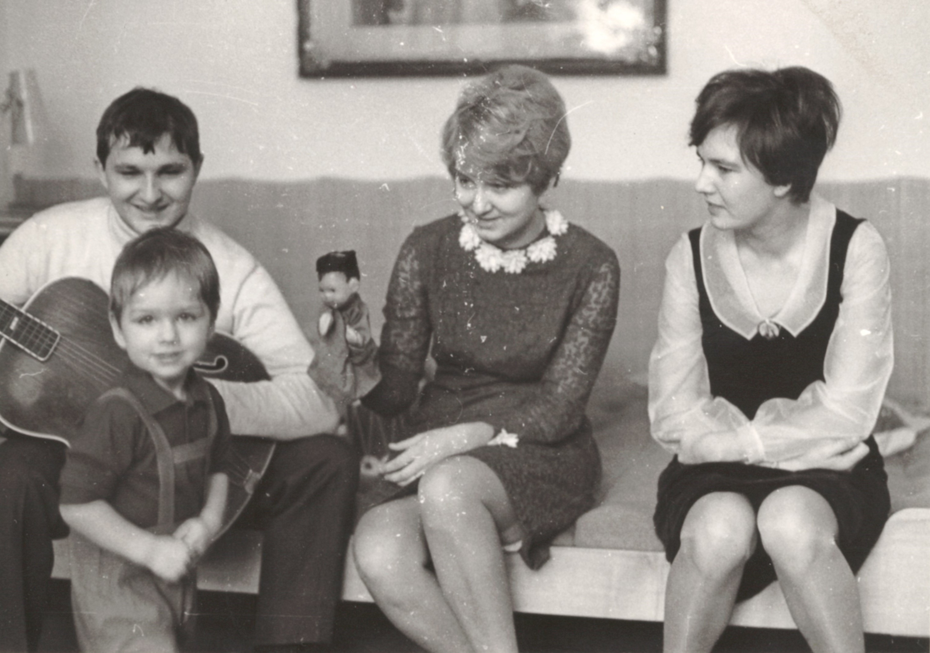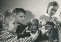 "We knew that dad was already making films, illustrating, he was busy - which I'll mention later - and so sometimes he wasn't at home because it was explained to us how to make a film, that when you cut and do sound afterwards, like post-synchro, that it just takes time, which was true. So for example, he wasn't home for a week and he would come home in the evening. We always waited by the window for the car to come and we knew that dad was home, so nothing seemed strange and we were a perfectly normal family that always met around the table once a day. Because we had a lot of... I mean, especially my mother was very particular about manners, so we really had to know how to eat with cutlery, wipe our mouths with a napkin, put a napkin on our knees, etc. Waiting for the eldest to start eating, just all the basics of manners, saying hello. I still remember how my mom would always hold our hands when we came to visit and squeeze that little hand to say hello and say hello so we wouldn't forget. And then goodbye. So it was a very strict upbringing in that respect. So we didn't know anything was wrong. My dad looked after us in an exemplary way, he was wonderful, he was great fun, he played with us. There were no problems. Well, I myself didn't find out about all this until I was sixteen, in high school, where my unloved classmate told me. Unloved partly because he was mean, and partly because he was a mathematician, which was a terrible combination for me. He started asking me about the house in Kampa and how we were living there. And I looked at him in amazement, because I had absolutely no idea that there was a house in Kampa and who would live there. So I came home in a huff. I can still see it, the scene when I went to the kitchen to my mother and said, 'Mom, please, is there a house in Kampa? What do you mean we live there? We don't live there.' Mum explained it all to me, how it was."