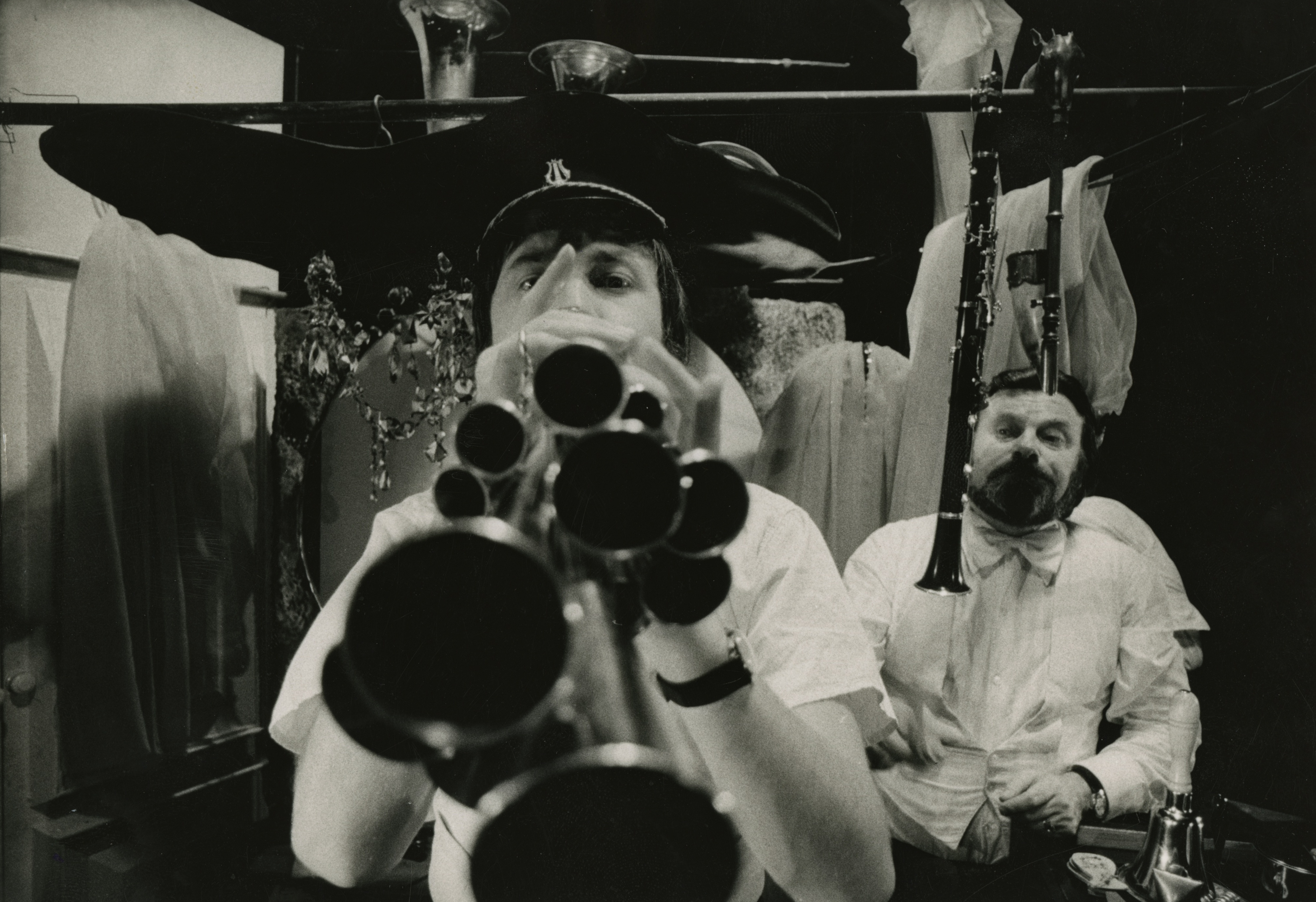 "[The exhibiting photographer] took great pictures and called me because we knew each other and said, 'Hey guys, you have this band now, I heard about it. I'm having an opening at Fotochema...' At the time, Fotochema was by the Elbe Bridge. I told him he was out of luck because we had just cancelled the band. He said we couldn't do it for him. He said let's go over there, get our instruments and play something. I thought it would be a problem, we'd get booed, we had no repertoire. And in those two instruments... I couldn't bring the piano. I could only bring a clarinet or some 'recorders'. Finally he talked me into it and Martin [Brunner] and I said, 'It's a lottery bet, we'll just go. You take the flute, I'll take the clarinet and some cymbals.' Martin calls it 'the mists of the mountains', we'll improvise there. We came in and started playing something, we didn't know what it was going to be. I started rustling the cymbals and stuff... They clapped, they didn't boo us and it seemed to be a success. Even when the opening was over, a guy came up to us and asked if we had a record. We stayed completely dead. And we were like, 'Aha! That was the birth of duo Ventil."