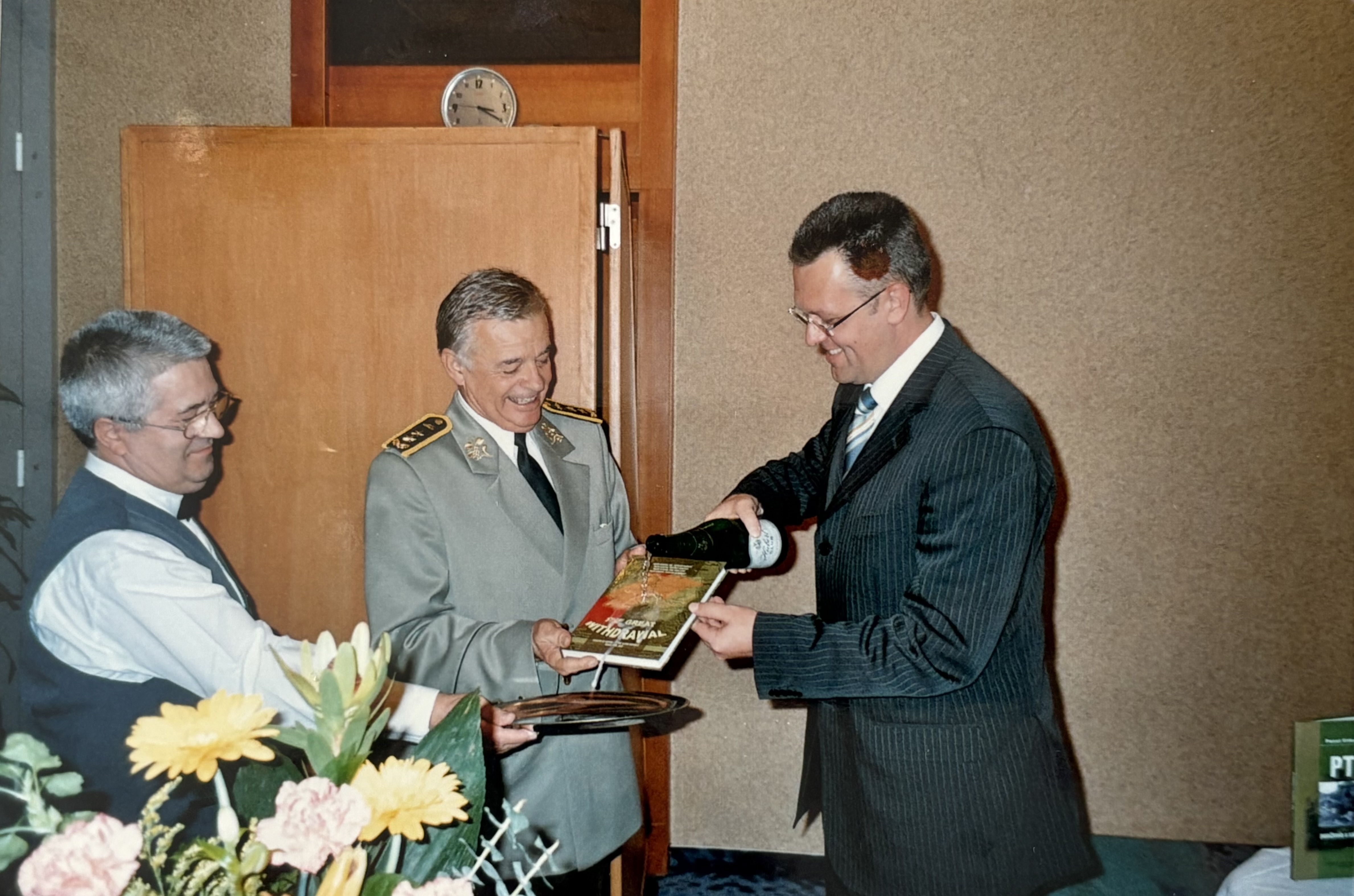 • „Vy ste teda súhlasili, že budete sa na tom podieľať alebo teda, že tomu budete veliť. A ako to prebiehalo? Kedy to vlastne začalo celé? Vacek mi povedal – Sveťo, budeš sa hlásiť u mňa 19. februára. Prišiel som k nemu, mi povedal, čo mám urobiť. Mi povedal - Sveťo, celé Československo musí vedieť, že to naša armáda myslí stopercentne a ten odsun nemá kto robiť a urobíme ho poriadne. A mi povedal - musíme informovať tlač, televíziu, aby bola stopercentná dôvera k armáde. A to sa v skutočnosti naplnilo. 19. už som išiel do Černínskeho paláca a už rokovali skupiny dve. Naša československá a sovietska. Ten rozdiel bol v tom, že tí Sovieti, to boli všetko kariérni diplomati, ostrieľaní vlci a u nás nebol nikto. Ja som nikdy v živote nebol na žiadnom takomto (rokovaní). Pre mňa v televízii bol problém poriadne... Viete, vôbec sme na to neboli zvyknutí. A teraz sme začali rokovať a ja som bol v komisii vojensko-technickej už pri tej tretej časti. My potrebovali sme kariérneho diplomata, aby viedol tú našu komisiu. Tak Jirka Diensbier si spomenul na Evžena Vacka.“ 2:01:39 – 2:03:06 Generál Naďovič popisuje, ako ho oslovili s ponukou manažovať odsun okupačných vojsk z Československa