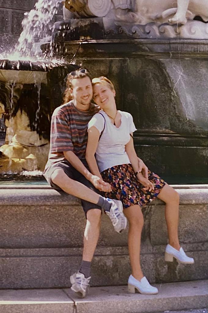 „On skončil výšku tuto na Slovensku a išiel, áno, na jazykovú školu, chcel vedieť po anglicky a ešte niečo. A potom nejaké počítače sme robili, ja neviem, čo všetko. Vieš, aj kvôli vízam, aby sa dalo ostať ako študent na študentské víza. To bolo také ešte komplikovanejšie ako teraz, lebo nebola Európska únia. No ale tam sme sa zoznámili, no na college jazykovom, ale ja som nemala šajnu, že nejaké Slovensko existuje, takže sme sa rozprávali po anglicky, no."